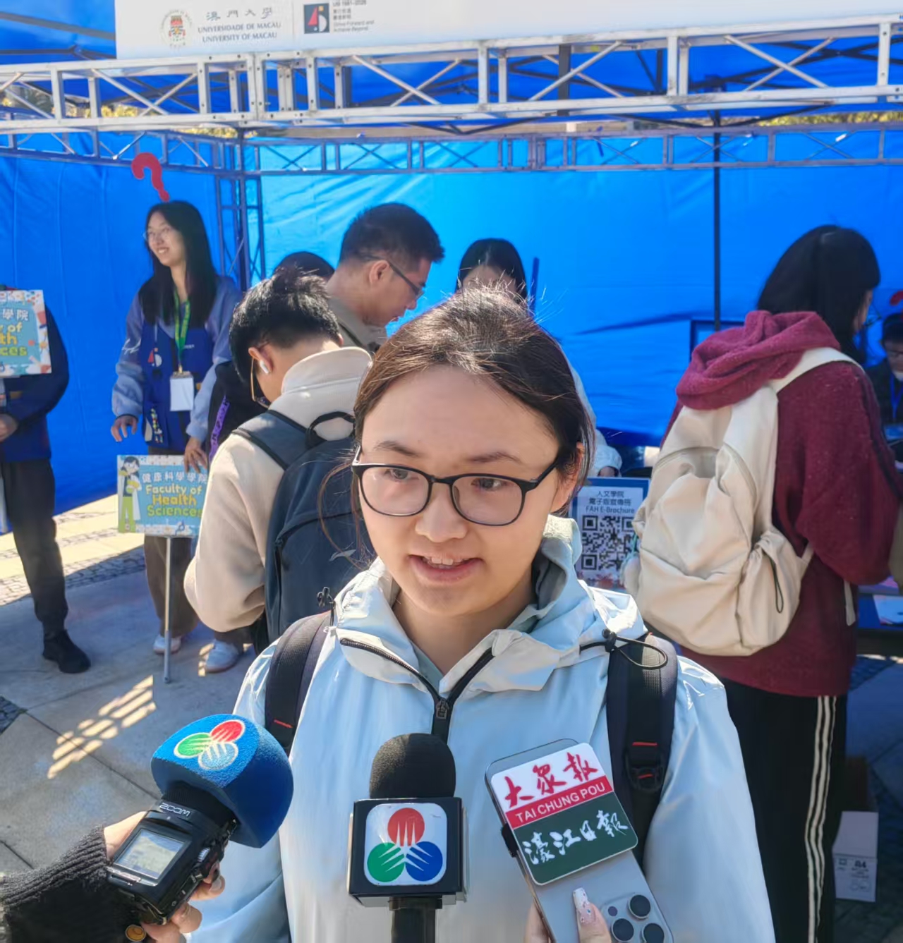 就讀高二學生韓同學與朋友到澳大參加開放日活動,她計劃選讀心理相關學科,認為透過開放日有助瞭解學校環境和課程內容等,澳大較有名氣及教學環境不錯。另有高中生李同学表示,與教授、學長學姐面對面交流後,對澳大的課程體系有了更清晰的認識,也更加嚮往這裡的學習生活,未來會選擇澳大升學。