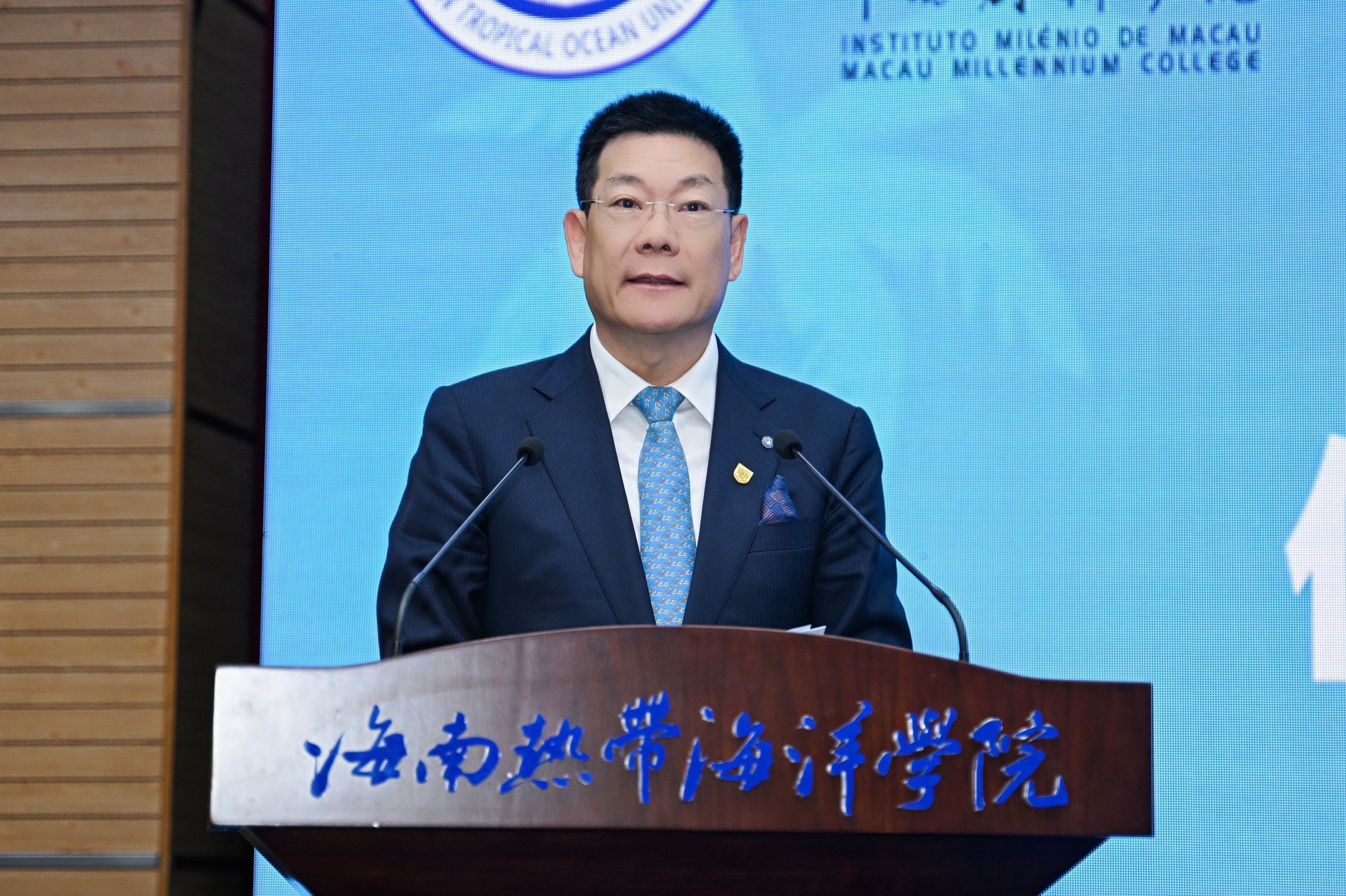 論壇開幕式上,中西創新學院校長仲偉合教授發表致辭。他指出,2026年是海南自由貿易港全面封關運作後的關鍵之年,深化與東盟國家的人文紐帶對構建中國—東盟命運共同體具有重要意義。為此,他提出三點倡議:一是構建「數智賦能」的跨境語言服務生態體系,推動人工智慧與多語種服務融合;二是打造「澳門—海南」雙樞紐人文交流機制,促進青年、智庫與文化聯動;三是探索「中文+數智技能」國際化人才培養新模式,服務自由貿易港與東盟合作需求。