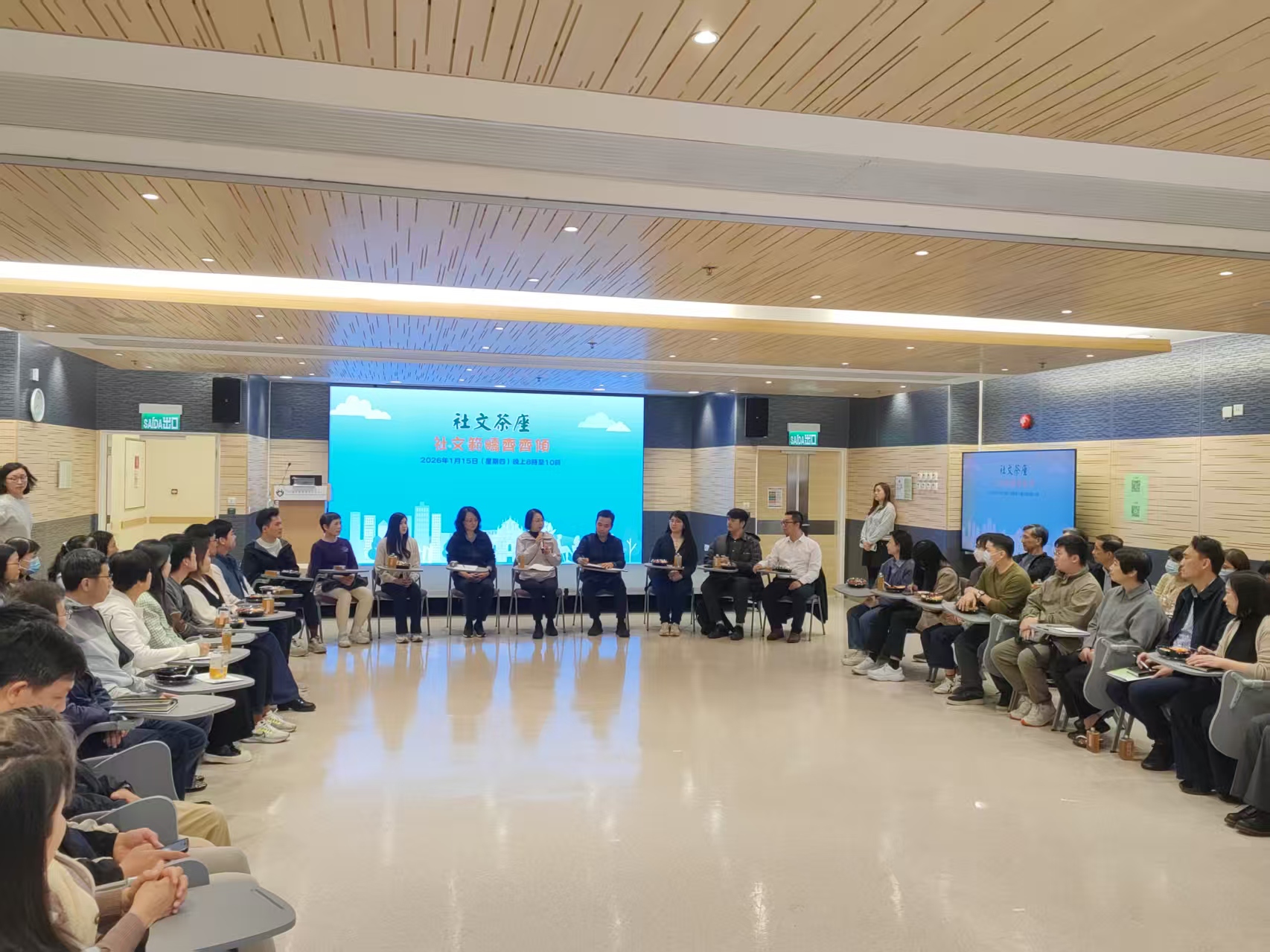 【即時新聞】「社文茶座·社文範疇齊齊傾」首場茶座於晚上八時在青洲衛生中心二樓會議廳舉行,主題為「健康促進、資源下沉、關口前移」,社會文化司司長柯嵐及衛生局局長羅奕龍,文化局局長梁惠敏,社工局局長韓衛,教青局局長龔志明等社文範疇團隊代表出席,與居民面對面交流。