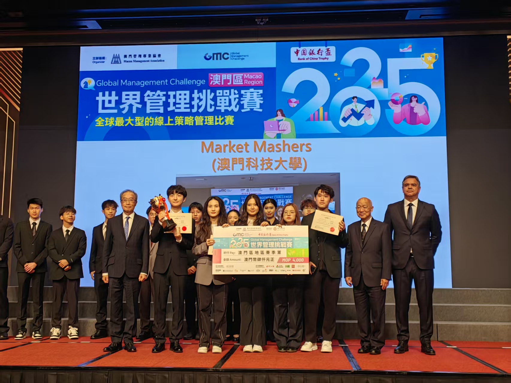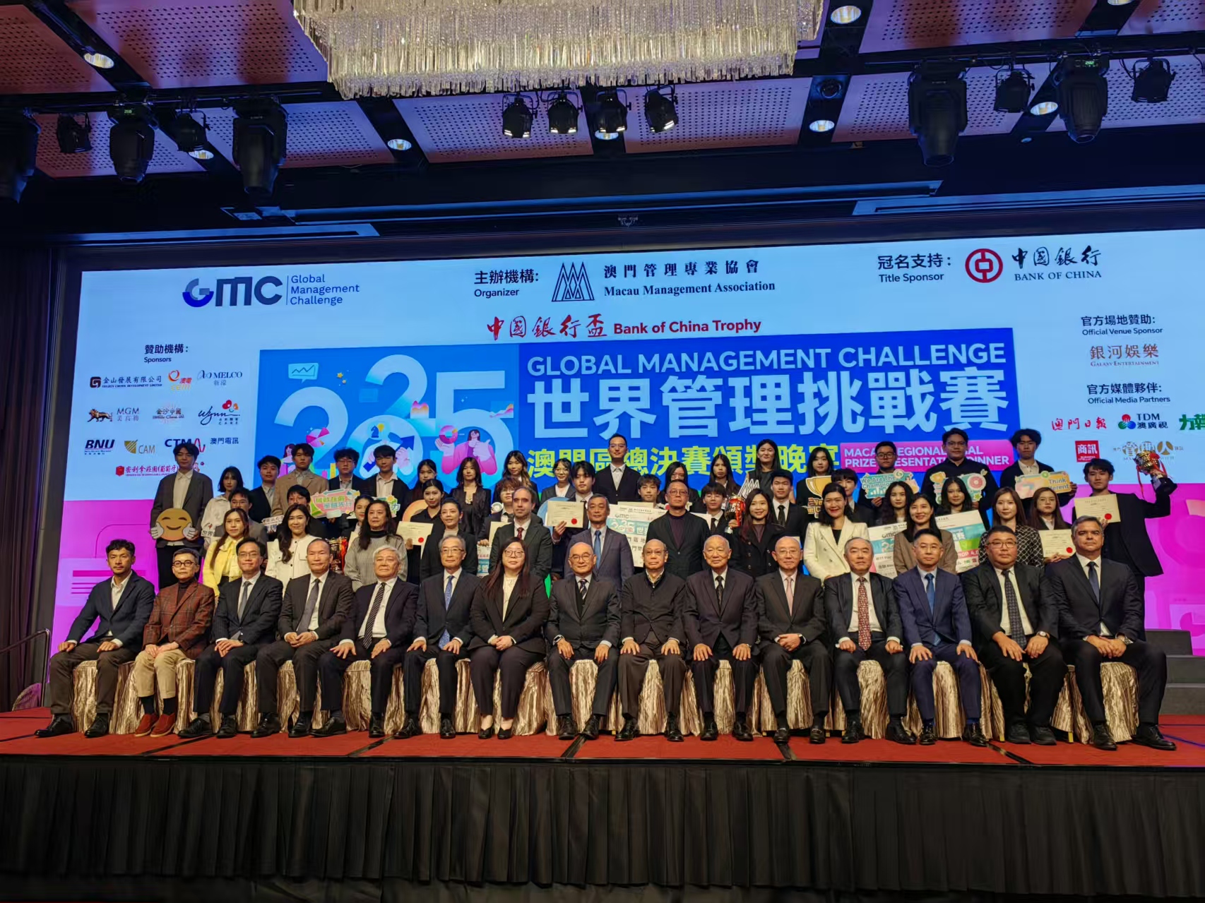 頒獎晚宴晚上七時假星際酒店8樓宴會廳舉行,管協會理事長劉永誠、監事長徐偉坤、副會長鄧君明、謝思訓、陳澤武,副理事長鄭堅立、包敬燾、吳皆妍、林家偉、何偉業,以及世界管理挑戰賽國際組委會、SDG行政總裁João Matoso Henriques等出席。
