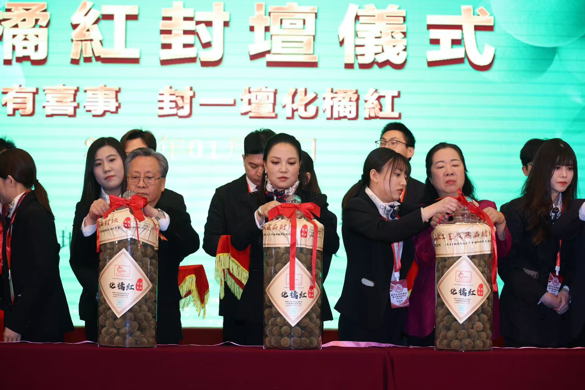 “有喜事,當封一壇化橘紅。”這句流傳已久的嶺南俗語,道出了化橘紅在傳統節慶與人生重要時刻中的特殊地位。活動現場舉行莊重的化橘紅封壇儀式,嘉賓們共同見證新壇封存的珍貴瞬間,寄寓未來歲月吉祥如意、福澤綿長。