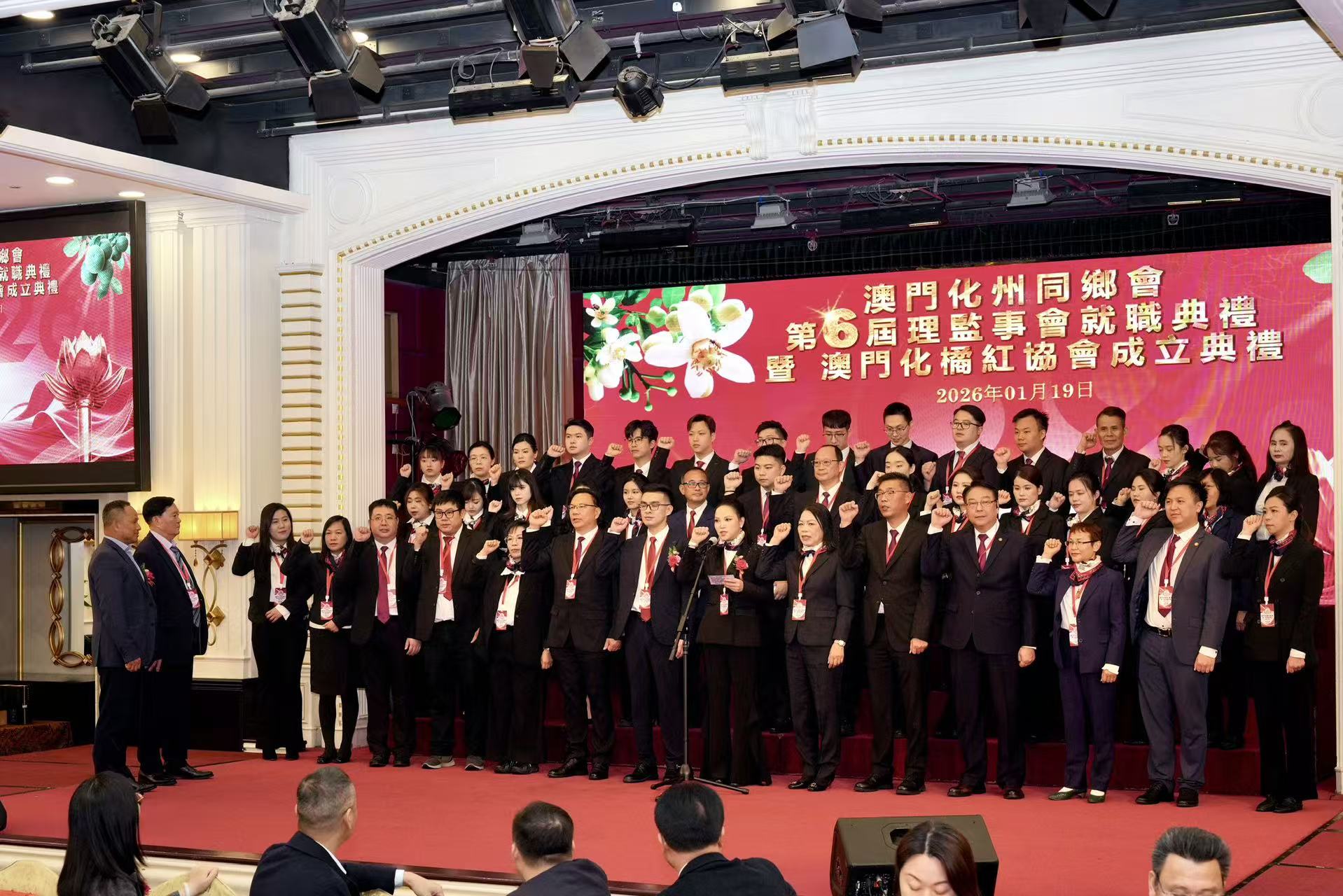 儀式晚上七時假萬豪軒舉行,全國人大常委高開賢、中聯辦協調部三處一級調研員尹小蘭、茂名市政協副主席肖軍、茂名市委統戰部常務副部長鄧澤友、身份證明局旅行證件廳代廳長唐偉杰、茂名市委台港澳工作辦公室副主任莫濤,化州市委常委、統戰部部長黃勇文,立法會議員柳智毅、李居仁、高天賜,經濟民生聯盟主席劉家裕,廣東省政協委員、澳門茂名同鄉總會會長李大萬,亞洲及太平洋區葡僑委員會主席姍桃絲,廣東省政協委員鄭安庭等嘉賓出席。