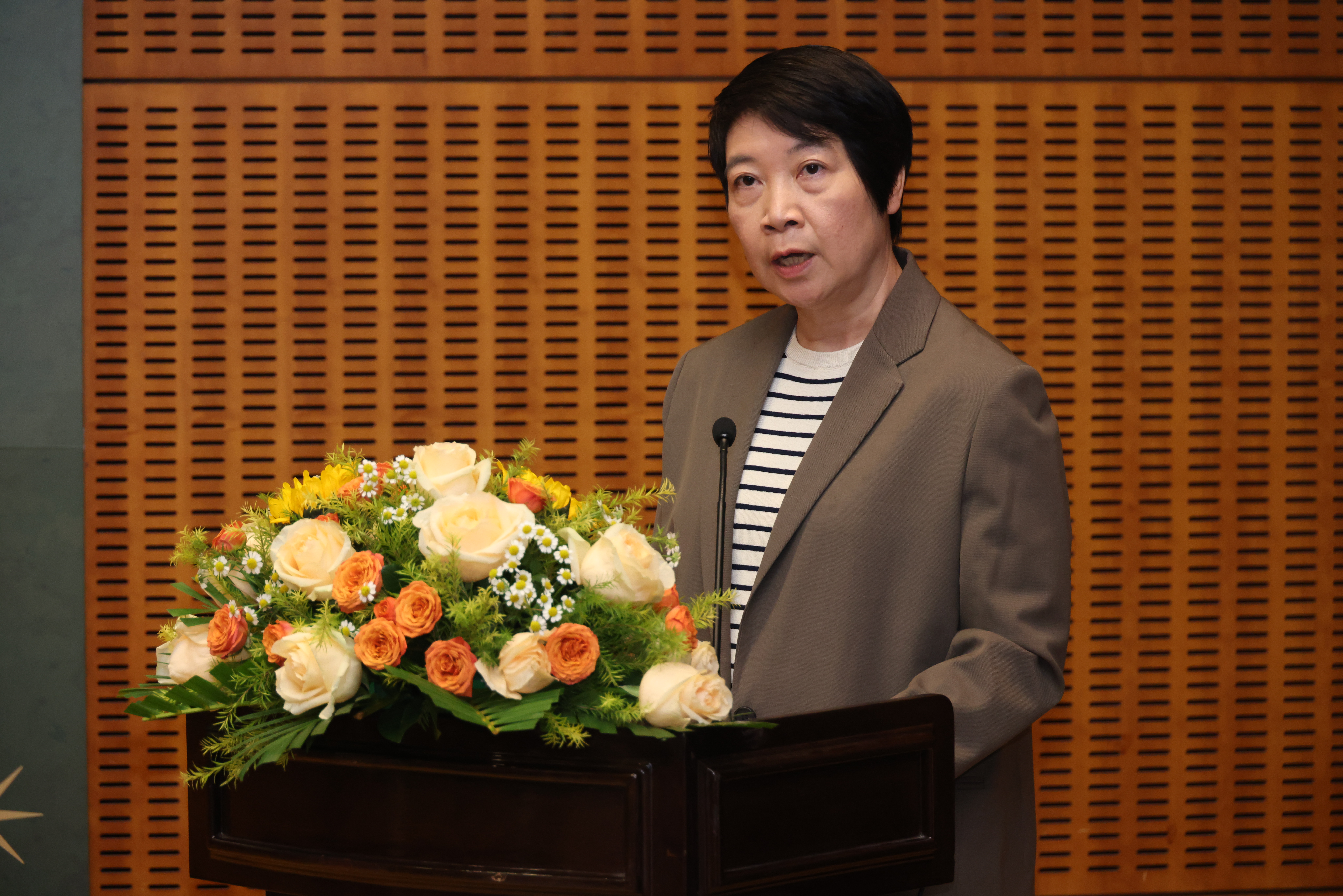 文化局局長梁惠敏致辭表示,澳門作為中西文化交流最重要的橋樑,從16世紀中國第一所西式大學「聖保祿學院"建立為起點,數百年間,澳門一直推動著東西方宗教、科學、文化、藝術的雙向交流及傳播,並在此過程中,孕育出豐富而獨特的文化內涵,凝練成今日的世界遺產「澳門歷史城區」,其中的聖保祿學院遺址——大三巴牌坊,正是人類文明交流互鑒的重要見證與文化象徵。