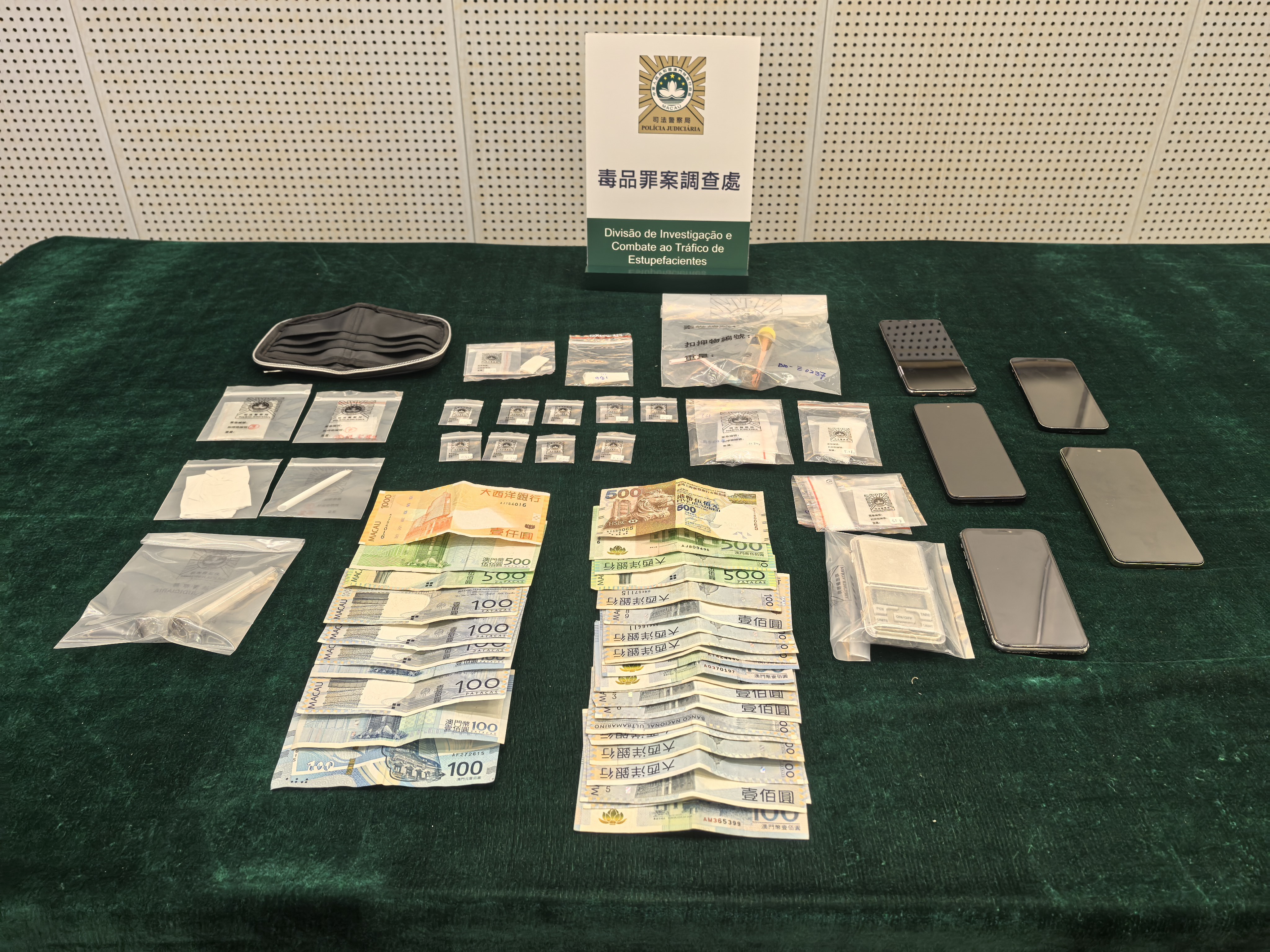 司警根據情報,於1月27日下午在中區部署。傍晚約6時,首先截獲首嫌Trinidad,在其身上搜出10小包共重3.82克的冰毒、吸毒工具及2,750澳門元懷疑毒資。至晚上約9時,警方在同一區域某住宅單位外截獲次嫌Lina,在她身上搜出5.18克冰毒,隨後進入單位搜查,再檢獲25.34克冰毒,並在單位內拘捕第三嫌犯Ernansyah,同時起獲吸毒工具、電子磅等分裝設備,以及3,800澳門元懷疑毒資。