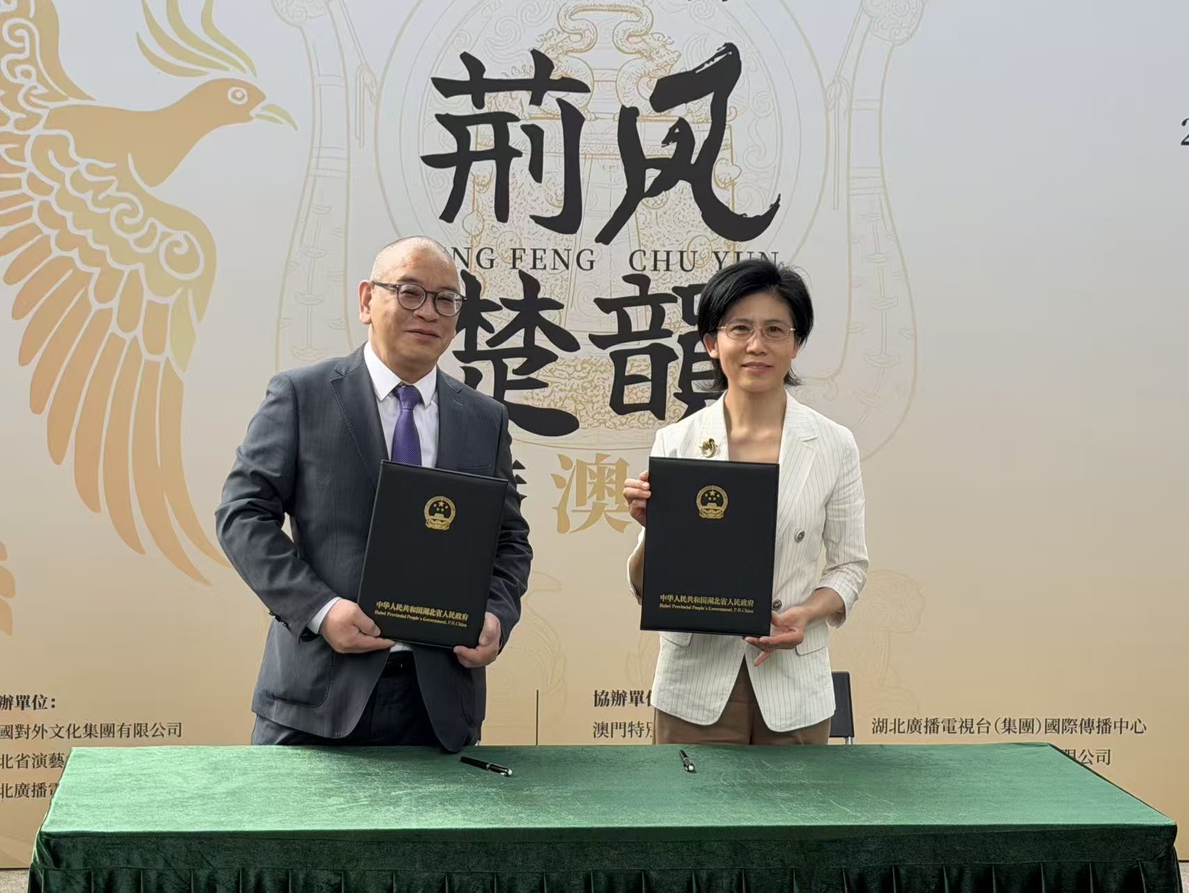 開幕式上,湖北長江廣電傳媒集團總經理張慧莉與澳門廣播電視股份有限公司執行委員會委員黃偉鴻,在與會領導和嘉賓的共同見證下,代表湖北廣播電視台(湖北長江廣電傳媒集團)和澳門廣播電視股份有限公司簽署合作備忘錄。雙方將在文化傳播、內容共創、平台互通等方面展開深度合作,共攜手提升荊楚文化在澳門及葡語地區的傳播力和影響力。