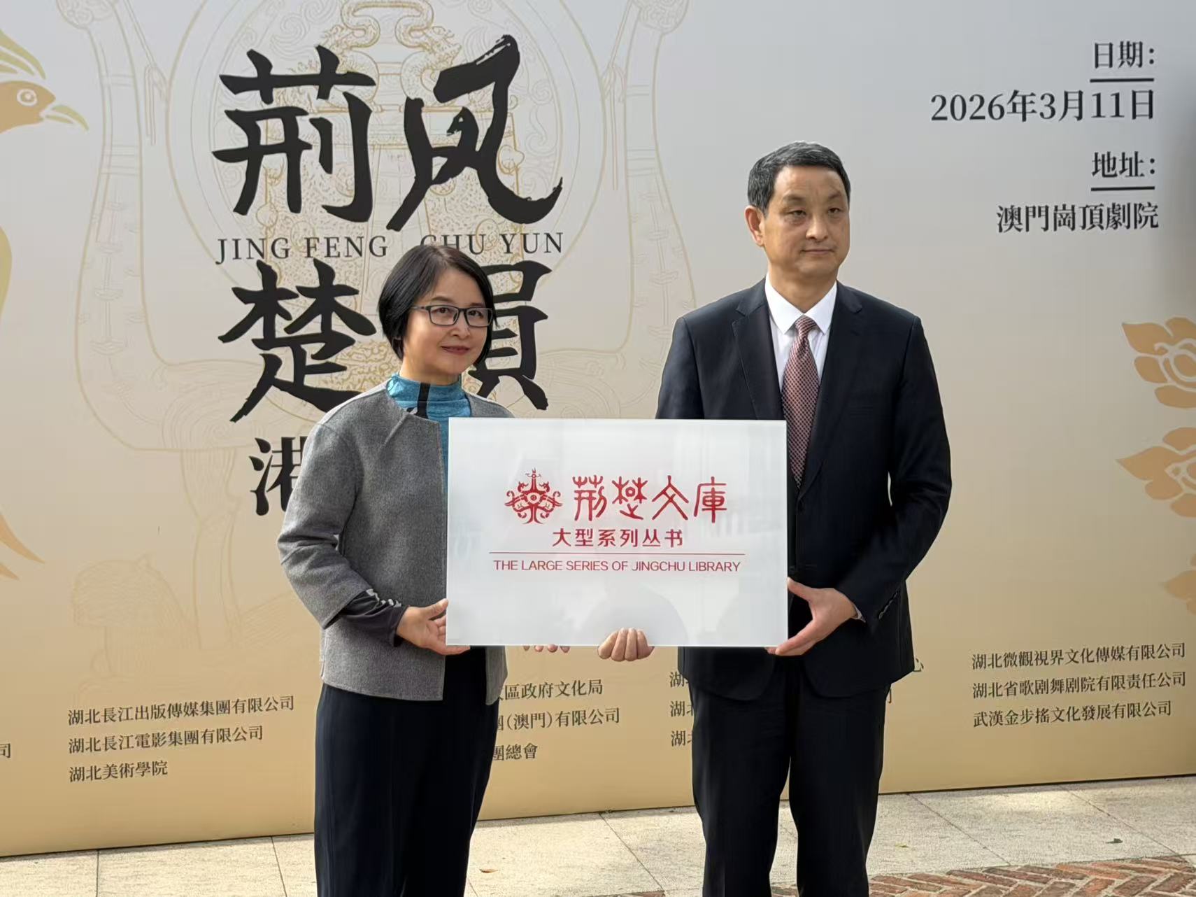 【即時新聞】由湖北省委宣傳部、紫荊文化集團有限公司聯合主辦的「世界因你而來 荊風楚韻港澳行」澳門站文化交流活動今日上午十時假澳門崗頂劇院舉行開幕儀式。本次活動通過文化巡展、民樂演出、合作簽約、圖書捐贈等豐富形式,全方位展現荊楚文化的深厚底蘊與時代活力,搭建鄂澳文化交流新橋梁,進一步增進澳門同胞對中華優秀傳統文化的認同與熱愛。