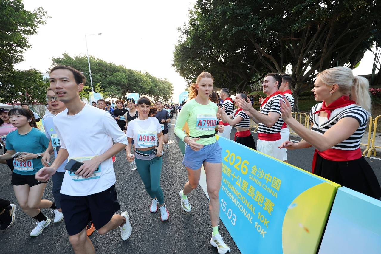 「2026金沙中國澳門國際十公里長跑賽」一眾參賽者先由西灣湖廣場起跑,十公里賽參賽者率先經過西灣大橋,穿梭金光大道後於終點奧林匹克體育中心運動場衝線。緊隨的歡樂跑參賽者於起跑後途經西灣大橋,之後前往奧林匹克體育中心運動場衝線。比賽期間參加者除了可以享受長跑樂趣外,亦可沿賽道欣賞沿岸風光,感受澳門的城市魅力。賽事期間大會安排了特色表演,為參賽者打氣及提升賽事氣氛。