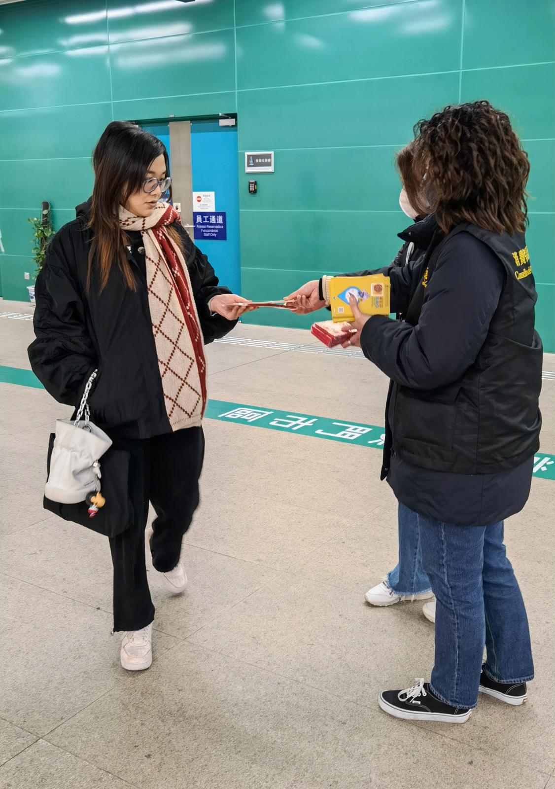 消委會人員在關閘、青茂口岸及港珠澳大橋澳門口岸等地點向旅客派發《指南》及「消保易」宣傳單張,為旅客即場示範以手機掃描「誠信店」的二維碼呈現的各種資訊,推薦「誠信店」優質標誌是獲得消委會認證的消費信心之選,以及介紹「消保易」網上維權服務,旅客表示歡迎相關的介紹,認為《指南》資料豐富實用,對旅客在澳的消費選擇有很大幫助。