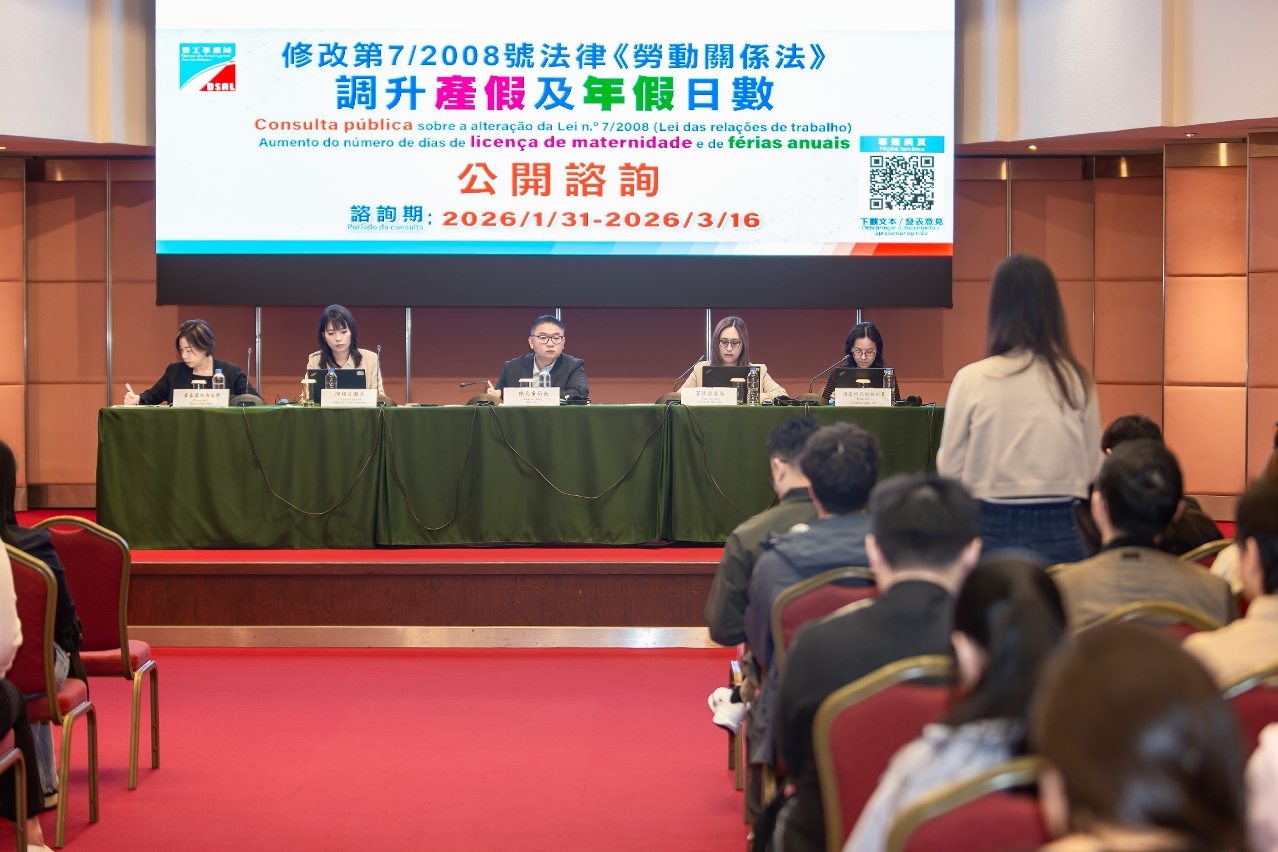 【即時新聞】勞工事務局(下稱“勞工局”)於1月31日至3月16日期間,就修改第7/2008號法律《勞動關係法》關於調升產假及年假日數展開為期45日的公開諮詢。諮詢期內合共收到近萬份社會各界提供的意見,勞工局衷心感謝各界積極建言獻策,共同為完善澳門的勞動權益保障作出貢獻。