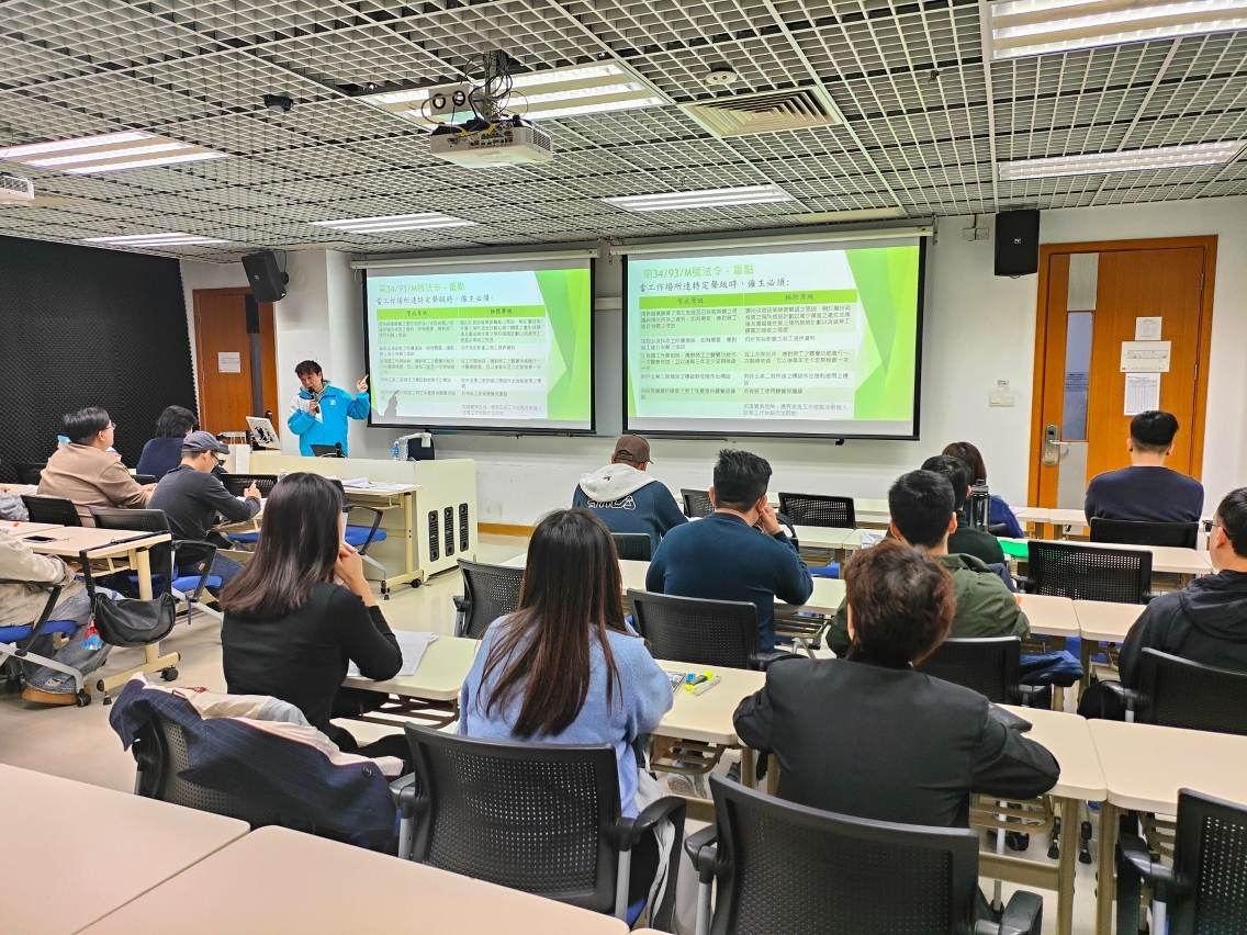 本課程以培養具備專業能力的建築業安全主任為目標,課程內容涵蓋職業安全、職業健康、安全管理及相關法規與實務操作四大範疇,總培訓時數為150小時,並特別安排學員進行實地考察,強化學員將理論知識轉化為建築安全管理實務的能力,是次課程主要對象為工程師、建築業界各工種工程人員及相關從業人士。