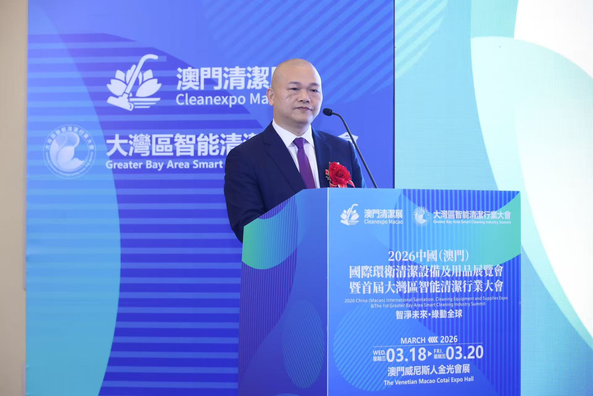 【即時新聞】由粵港澳大灣區洗滌商業聯合會指導、廣州加貝斯展覽有限公司主辦的2026中國(澳門)國際環衛、清潔設備及用品展覽會暨首屆大灣區智能清潔行業大會今日在威尼斯人金光會展正式拉開帷幕。本屆展會以「智淨未來·綠動全球」為主題,展覽面積逾10000平方米,參展陣容覆蓋廣泛,重點匯聚了智能清潔設備、清潔日化、環衛裝備、洗滌服務、奢侈品護理、室內空氣淨化等領域的優質企業,近百家海內外展商攜前沿產品與技術亮相。