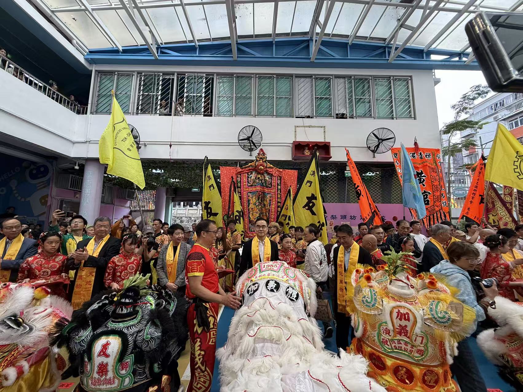 【即時新聞】由沙梨頭坊眾互助會、沙梨頭土地廟慈善會合辦的“2026萬家歡樂賀土地寶誕醒獅上香儀式”,今日上午十一時在沙梨頭坊眾學校球場及土地廟舉行,多名政府官員、社會賢達主禮醒獅簪花掛紅、點睛上香儀式,同時友傑、友樂文娛、加義、忠信、黃昌以及業餘體育會獅藝表演助興,與區內居民共同恭祝土地爺爺寶誕。
