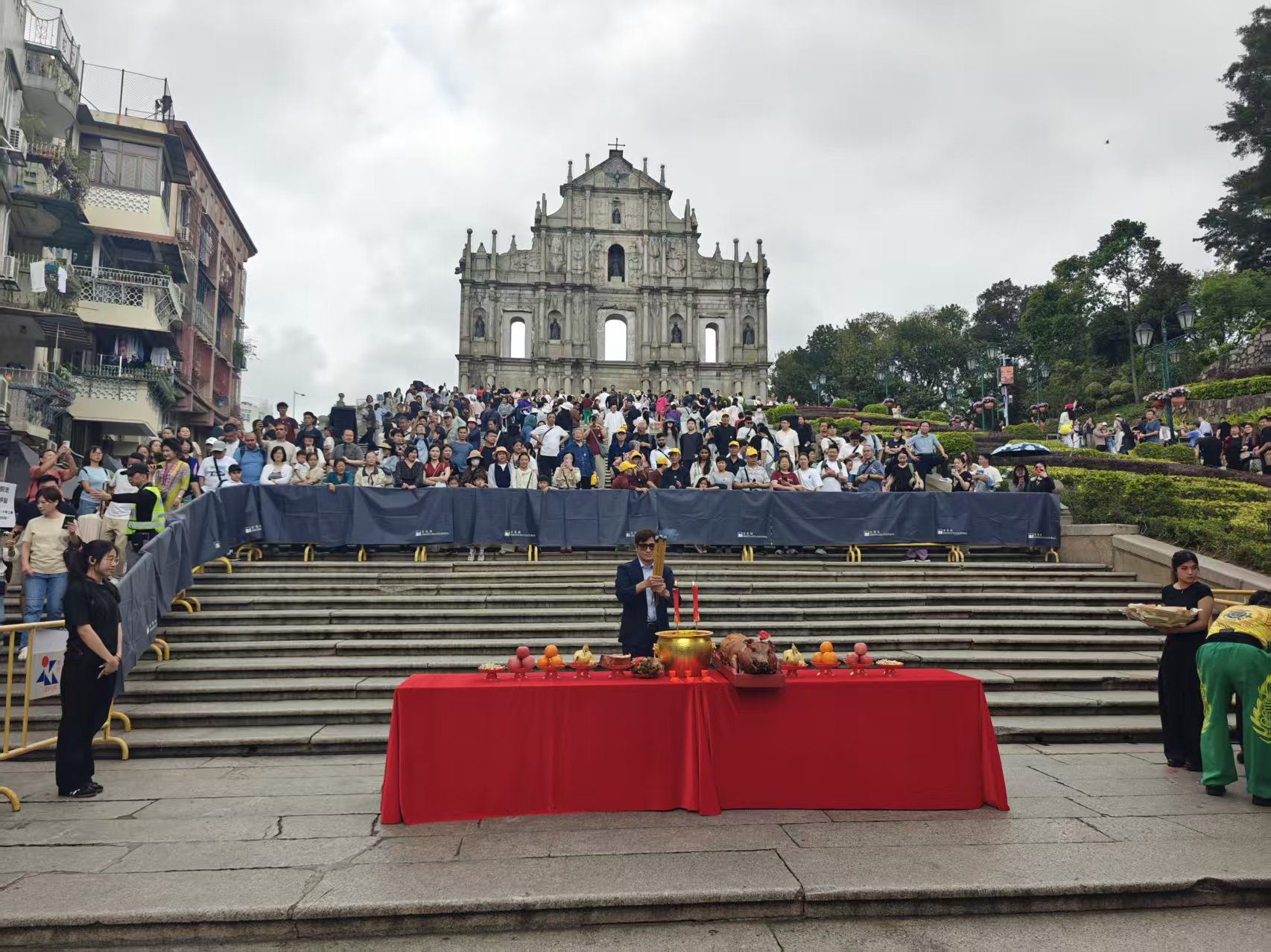 【即時新聞】由文化局、澳門永利渡假村、澳娛綜合度假股份有限公司、金沙中國有限公司、美高梅及銀河娛樂集團聯合主辦的「2026澳門國際幻彩大巡遊」將本周日(29日)舉行。為祈願活動順利圓滿,各單位代表今天中午在大三巴牌坊進行拜神儀式,並設醒獅表演及邀請參演藝團演出助慶,吸引眾多市民及旅客駐足欣賞,現場氣氛熱鬧歡騰。