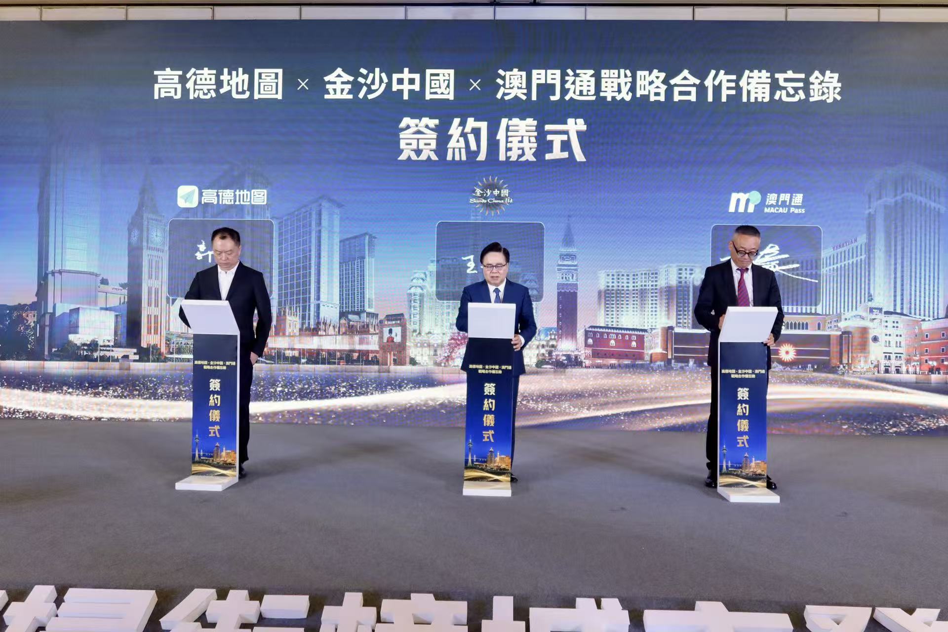 發佈會上,高德與澳門通、金沙中國還簽署了戰略合作備忘錄,以更好助力澳門文旅產業高質量發展。孫豪表示,希望通過三方合作,以數字化技術搭建連接橋樑,讓澳門商家享受數字化紅利,同時讓澳門的獨特魅力觸達更多遊客,助力提升小區經濟活力。