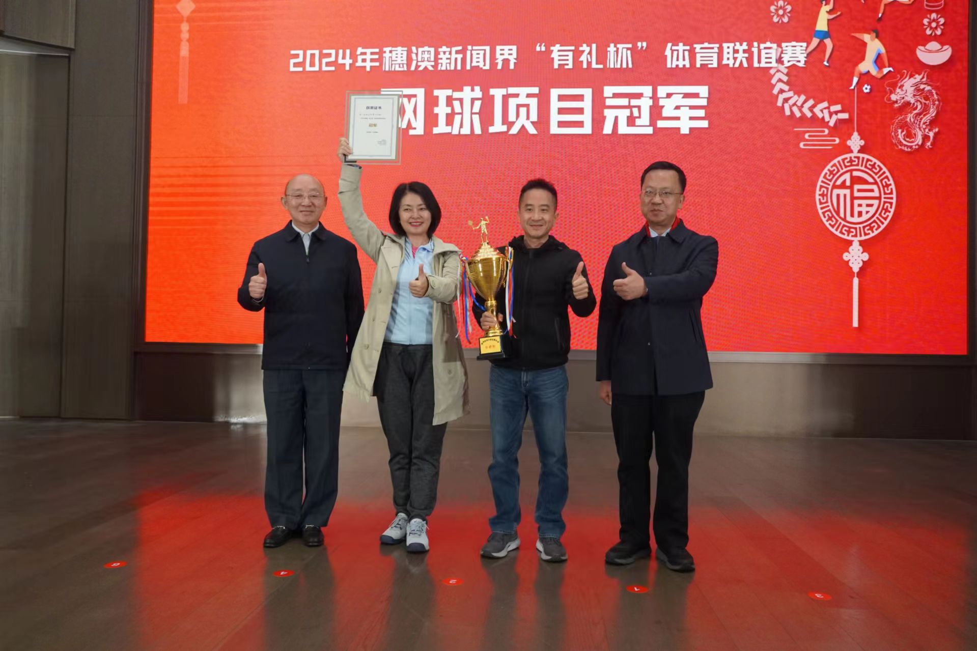 現場,與會領導先後為各項聯誼賽獲獎隊伍頒獎。其中,穗澳新聞界「有禮杯」足球賽和網球賽由澳門記協隊獲得冠軍;羽毛球賽由廣州記協隊獲得冠軍。穗港澳新聞界「新聞杯」足球聯誼賽由香港記協隊獲得冠軍。