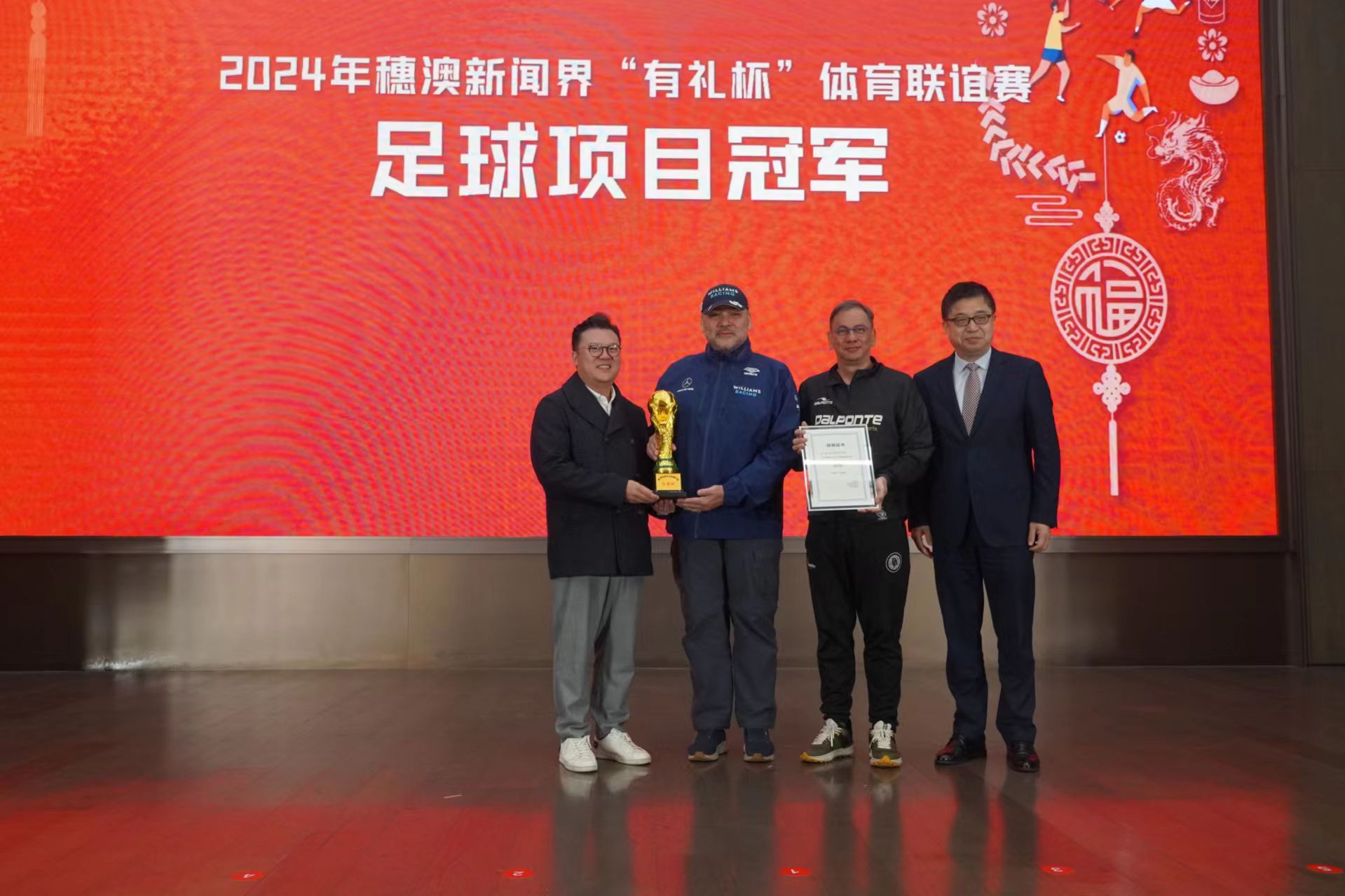 【即時新聞】二〇二四穗港澳新聞界新春團拜會暨穗澳新聞界「有禮杯」體育聯誼賽、穗港澳新聞界「新聞杯」足球聯誼賽頒獎典禮今(25)日在廣州舉行,三地嘉賓齊聚廣州,增進交流,暢敘友誼。