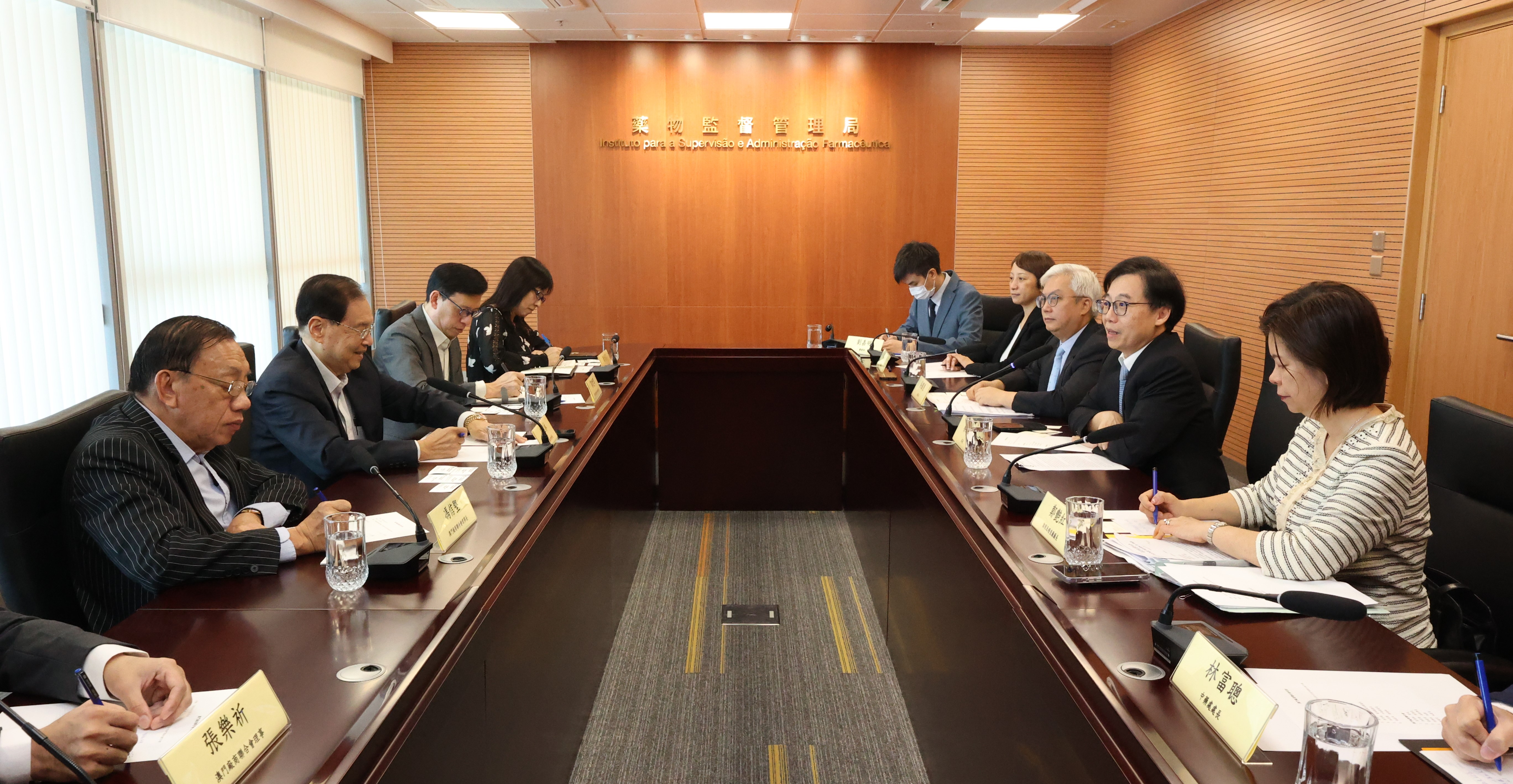 交流會上,雙方就澳門製造/澳門監製、藥物廣告及會展、中成藥註冊及人才培養等方面互相交換意見並探討交流。