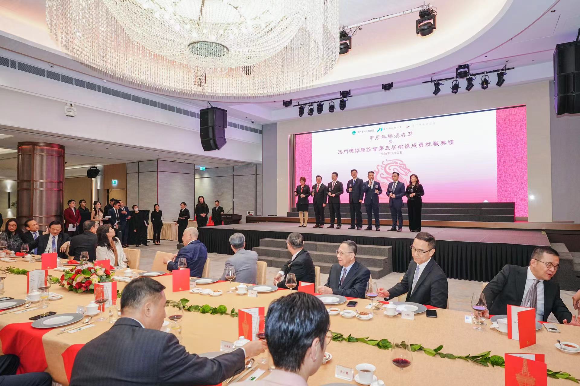 【即時新聞】廣州海外聯誼會、澳門廣州社團總會、澳門穗協聯誼會合辦的甲辰年穗澳春茗暨澳門穗協聯誼會第五屆架構成員就職典禮今晚在澳門旅遊塔舉行,全國政協副主席何厚鏵,立法會主席高開賢,中聯辦協調部部長仇昱,廣州市委常委、統戰部部長、廣州海外聯誼會會長王世彤等出席。