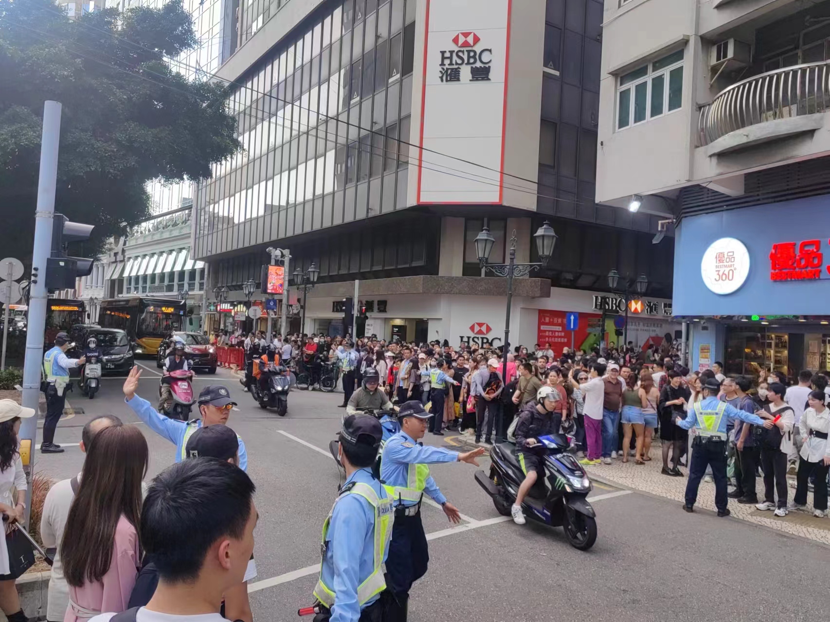 因應活動,多處道路實施臨時交管措措施,其中南灣大馬路、區華利前地、南灣湖景大馬路及何鴻燊博士大馬路實施臨時交通管制措施,多名治安警員在路口指揮交通。