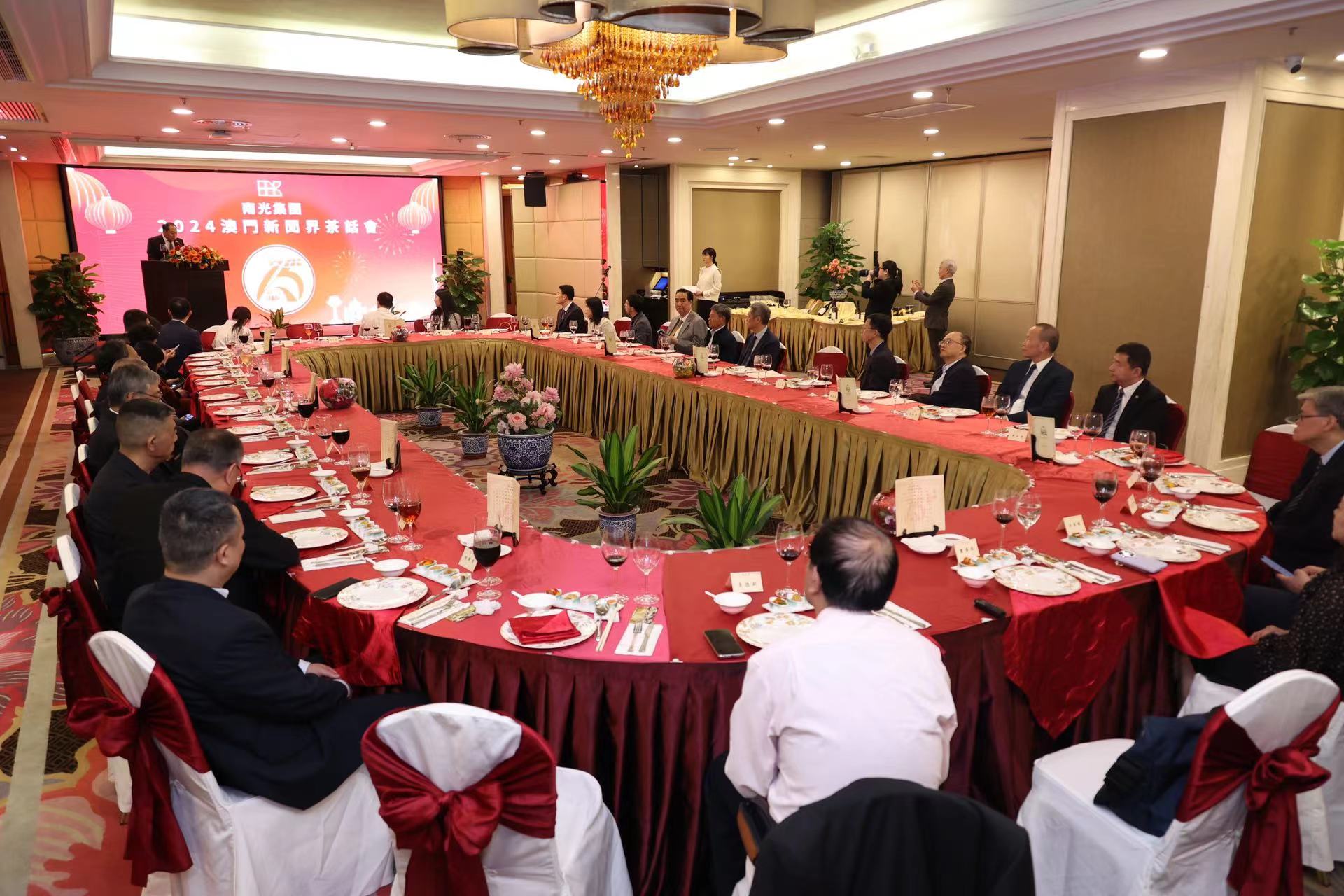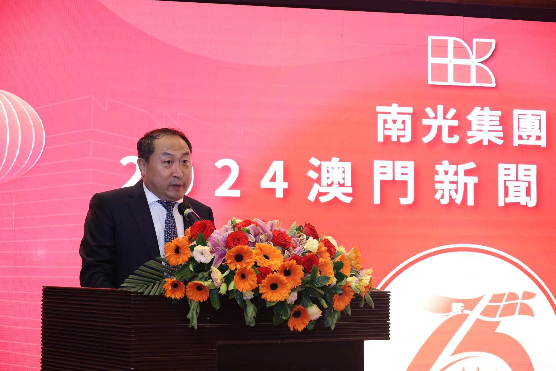 【即時新聞】南光集團在萬豪軒舉辦2024澳門新聞界茶話會,集團總經理姜維亮致辭表示,希望和歡迎新聞界加大對南光的關注和宣傳報道力度,引領更多人了解南光曆史,關注澳門和橫琴深合區的新動向、新發展、新成就,展示「一國兩制」在澳門成功實踐帶來的無限活力與光明前景。