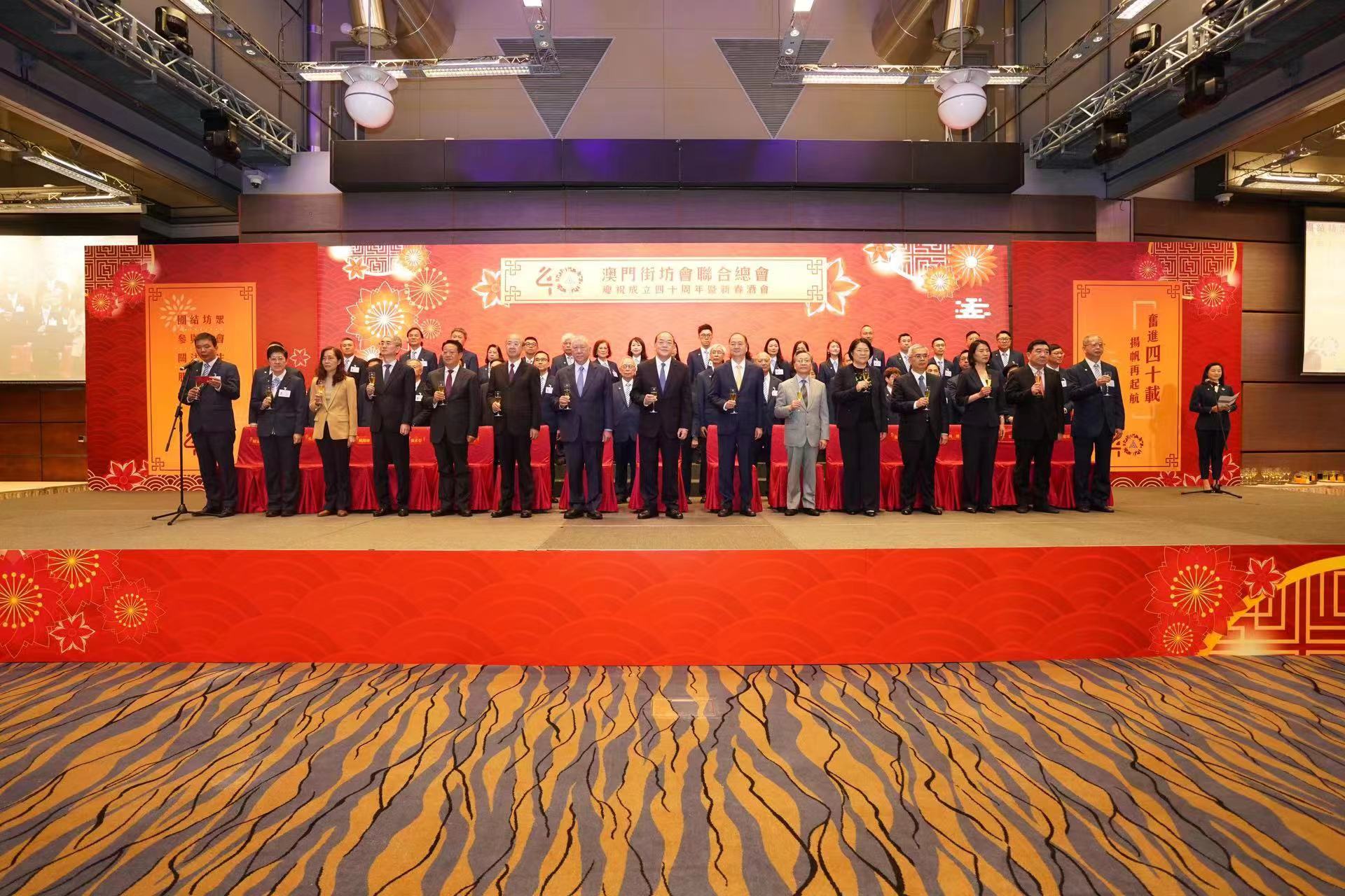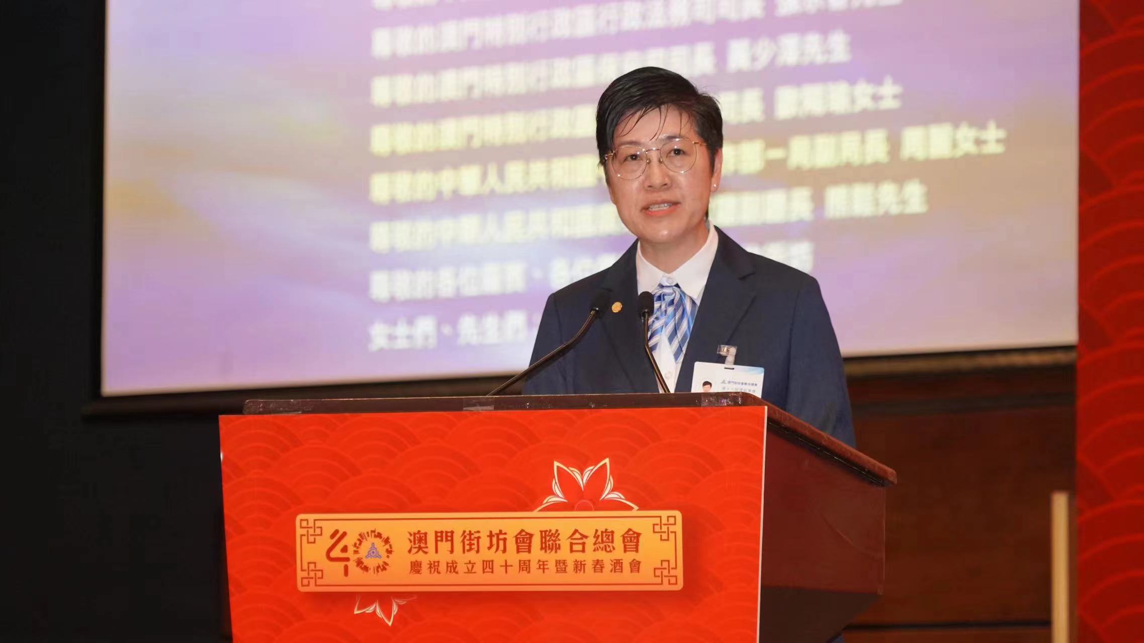 【即時新聞】街坊總會下午四時假旅遊塔四樓宴會廳舉行慶祝成立四十周年暨新春酒會,行政長官賀一誠,全國政協副主席何厚鏵,中聯辦主任鄭新聰,外交公署特派員劉顯法,立法會主席高開賢,中國民政部副部長唐承沛等出席。街坊總會會長吳小麗致辭表示,將持續推動社會服務高質量發展,繼續支持特區政府“1+4”政策,配合特區政府提振社區經濟發展,加快推動與綜合度假休閒企業合作活化六個歷史片區,並加強與當區中小企聯動,推出更多非博彩元素活動,構建特色的街區文旅景點,拉動社區消費。同時,更加積極主動參與橫琴深合區建設,以橫琴深合區為先行地,加強琴澳合作,聯結灣區、深合區產業資源,加強琴澳合作交流,助力培育和壯大澳門“新質生產力”,更好服務國家發展大局,助力中國式現代化宏偉藍圖的實現。