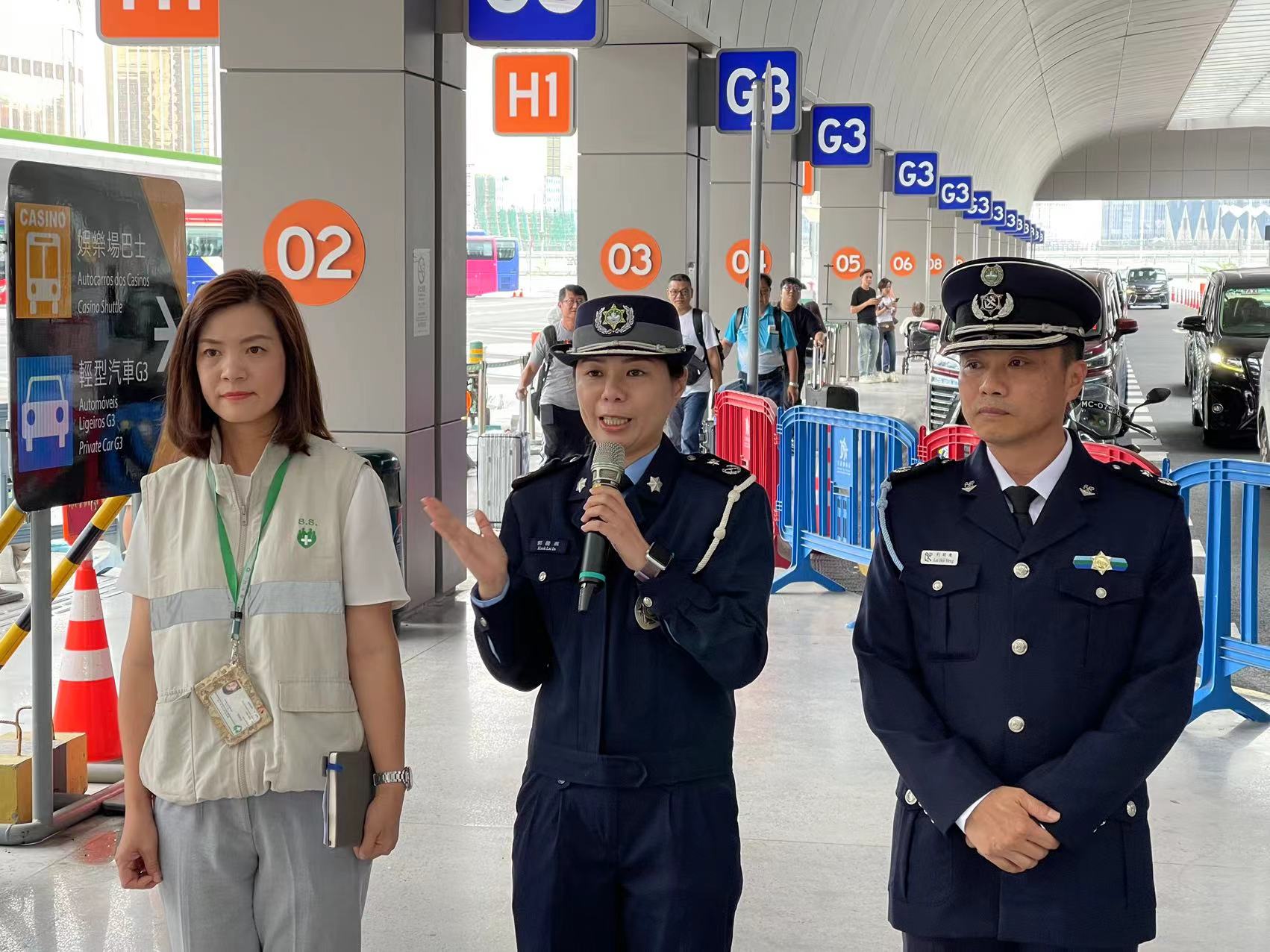 【即時新聞】橫琴口岸客貨車通道隨車人員驗放廳將於明日下午三時起正式啟用。澳門海關今日下午三時邀請傳媒機構實地視察採訪,澳門海關關務監督利開慶、治安警察局警司郭麗燕、衛生局疾病預防及控制中心職務主管李佩儀,以及橫琴口岸綜合交通樞紐工程建設指揮部副總指揮彭波介紹橫琴口岸隨車人員驗放廳情況。