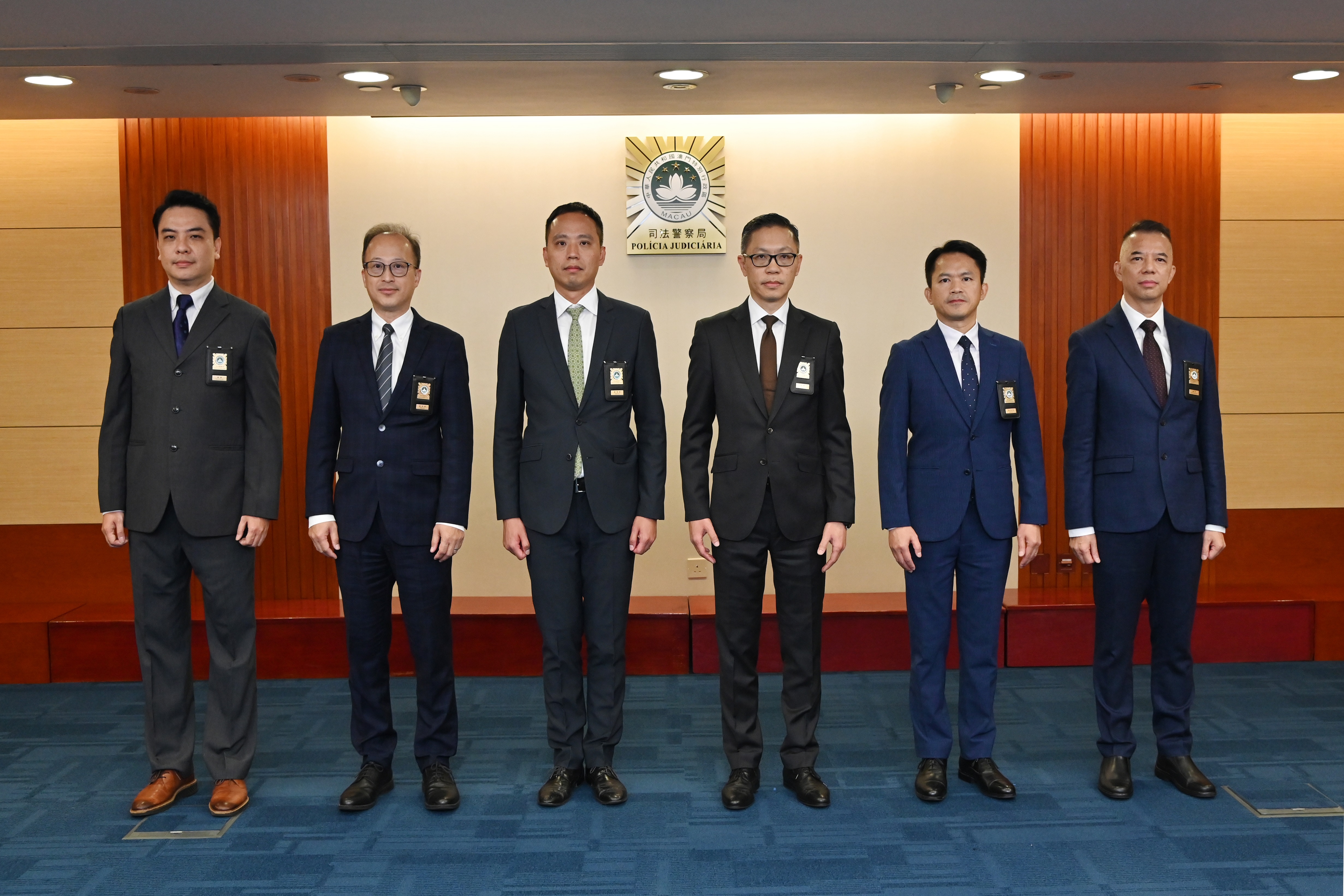 【即時新聞】司法警察局於今日舉行主管就職儀式,在薛仲明局長監誓,賴文威、蘇兆強、岑錦榮三位副局長及各部門主管的見證下,博彩及經濟罪案調查廳廳長鄧錦華和博彩罪案調查處處長黃志豪分別宣誓就職。