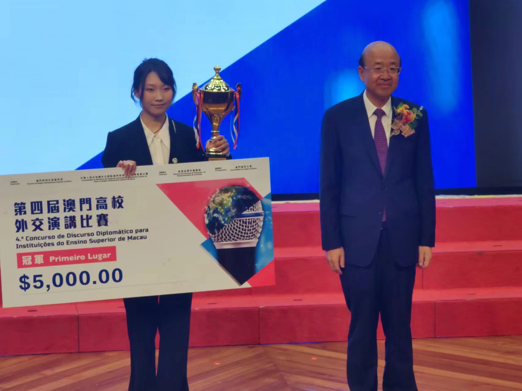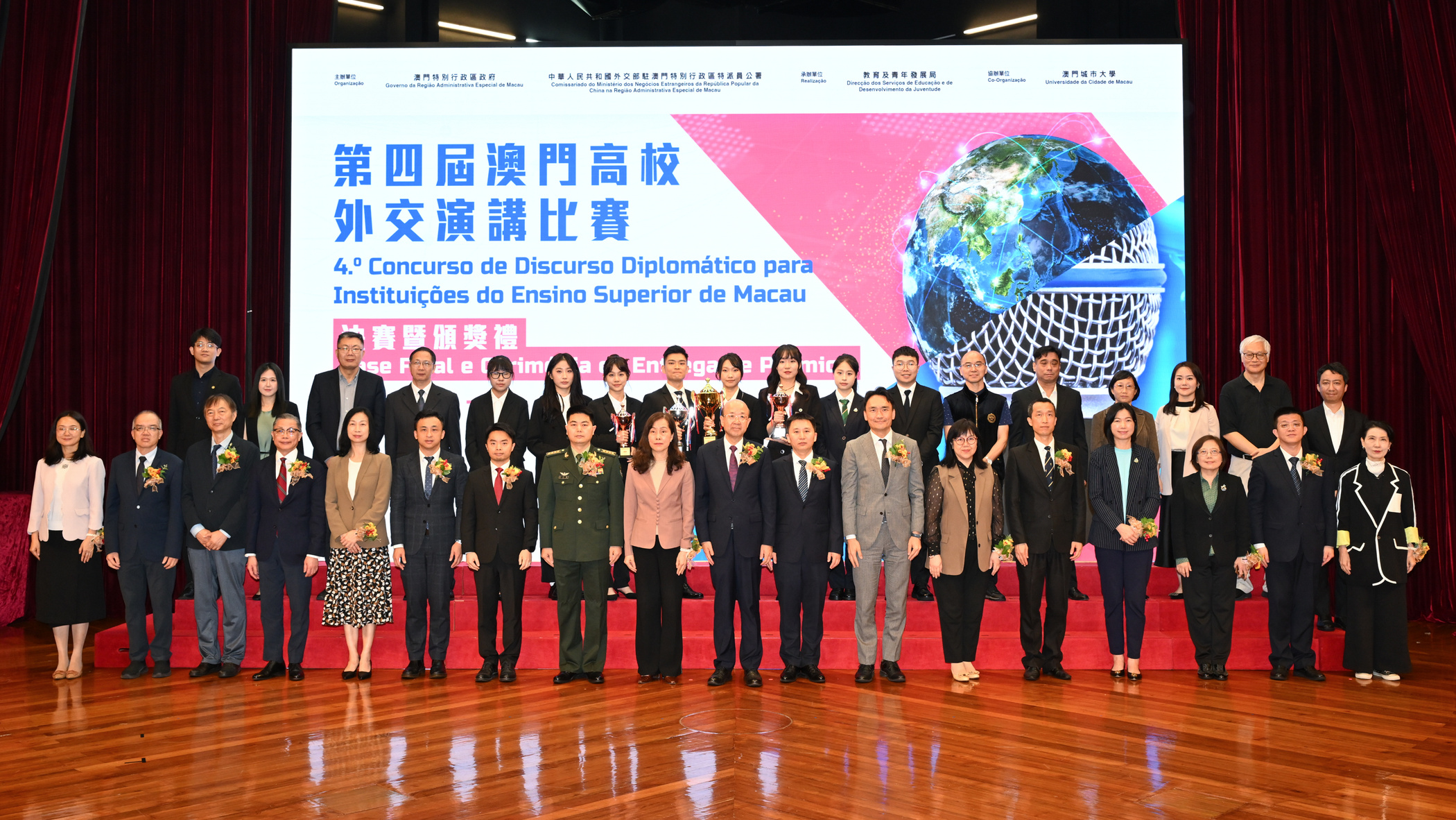 【即時新聞】特別行政區政府、外交部駐澳門特派員公署主辦,教育及青年發展局、外交部駐澳門特派員公署新聞和公共外交部承辦,澳門城市大學協辦第四屆澳門高校外交演講比賽下午舉行決賽及頒獎禮,入圍決賽的八名選手以“雙慶”為主題,從不同的角度闡釋回歸二十五年的澳門故事,最終由澳門科技大學葉子涵勇奪冠軍,演講題目為“一分鐘”;亞軍得主為保安部隊高等學校林智健,演講題目為“澳門瓷磚畫”;而季軍得主為澳門城市大學胡馨瑤,演講題目為“濠江春潮湧,風勁揚帆起”。