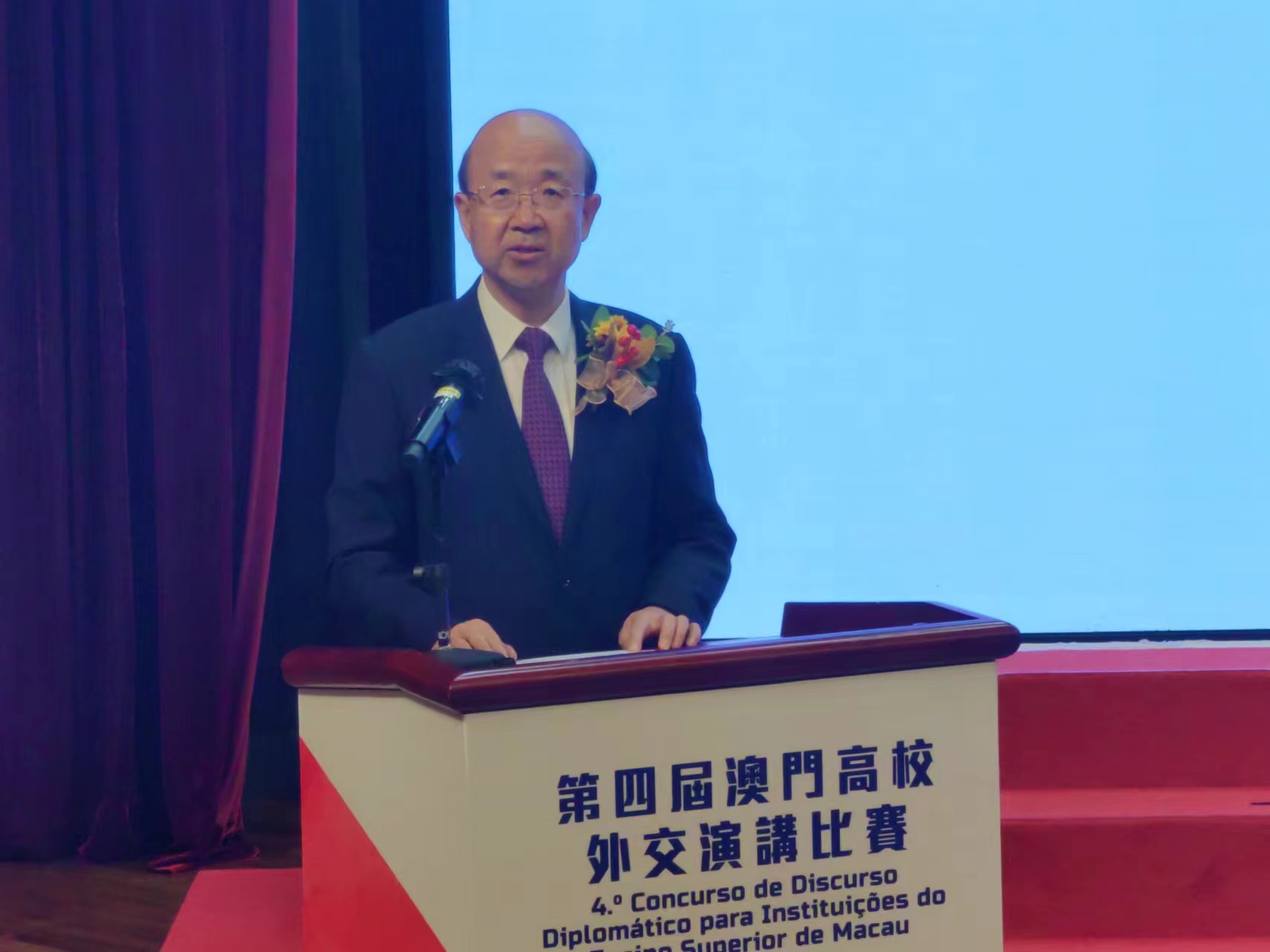 劉顯法致辭向進入決賽及獲獎選手表示祝賀,在比賽中,八位選手充滿激情的生動演繹,展現朝氣蓬勃的青春風采,從中感受到澳門青年為國家建設和社區發展矢志奮鬥的熱血澎湃,相信同學們在比賽中經受了鍛煉,也收穫了成長,對中國特色大國外交的目標、方向、指導原則和使命任務有更加深刻的理解和把握。當今世界,人類面臨著多的挑戰,但無論國際風雲如何變化,中國作為負責任大國,始終保持大政方針的連續性和穩定性,堅定的做動盪世界中的穩定力量。青年興則國家興。習近平主席始終高度重視、親切關懷澳門青年成長成才,曾多次與澳門學生親切交流,書信往來,勉勵澳門青年勇於擔當,繼續探索發展“一國兩制”事業的歷史任務,傳承愛國澳優良傳統,積極融入國家發展大局,積極參與粵港澳大灣區建設,助力澳門經濟適度多元發展,為“一國兩制”在澳門成功實踐作出新的貢獻。他希望大家牢記習主席的囑託,弘揚愛國精神,砥礪報國之志,珍惜韶華,奮發有為,深入瞭解國情區情,積極投身社會實踐,努力使自己成為國家和特區建設的有用之才、棟樑之才。希望同學繼續挖掘用好澳門、融通中外、聯通世界的優勢,積極宣介中國特色大國外交,做中國故事和澳門“一國兩制”成功實踐故事的講述者,人類命運共同體理念的傳播者,為世界更好認識中國,認識到中國及澳門貢獻更多的智慧和力量。外交公署將堅持以習近平外交思想為指引,全面準確、堅定不移貫徹“一國兩制”方針,充分發揮外交優勢,支持澳門“一中心、一平台、一基地”建設,助力特區持續擴大對外交往合作;將與中央駐澳機構、特區政府和社會各界一道,繼續辦好澳門青少年外交知識競賽、高校外交演講比賽、青年外交官進校園等系列活動,向聯合國等國際機構推薦澳門青年人才,組織特區師生到國內外交流參訪,為澳門青年在國際舞台綻放青春光彩提供更多更好的機會。