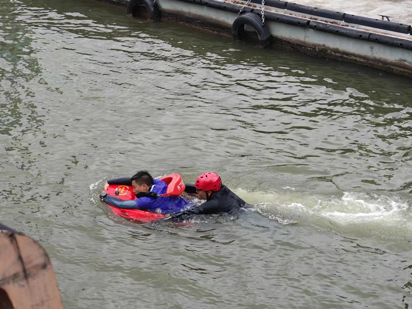 另一項「拯救被困內港貨倉人士」,模擬8號颱風及風暴潮期間,2名男子在內港6A碼頭內準備撤離時,因風暴潮關係,內港水位急速上升,在撤離未及下逃到貨倉上層避險,要求海關救助。