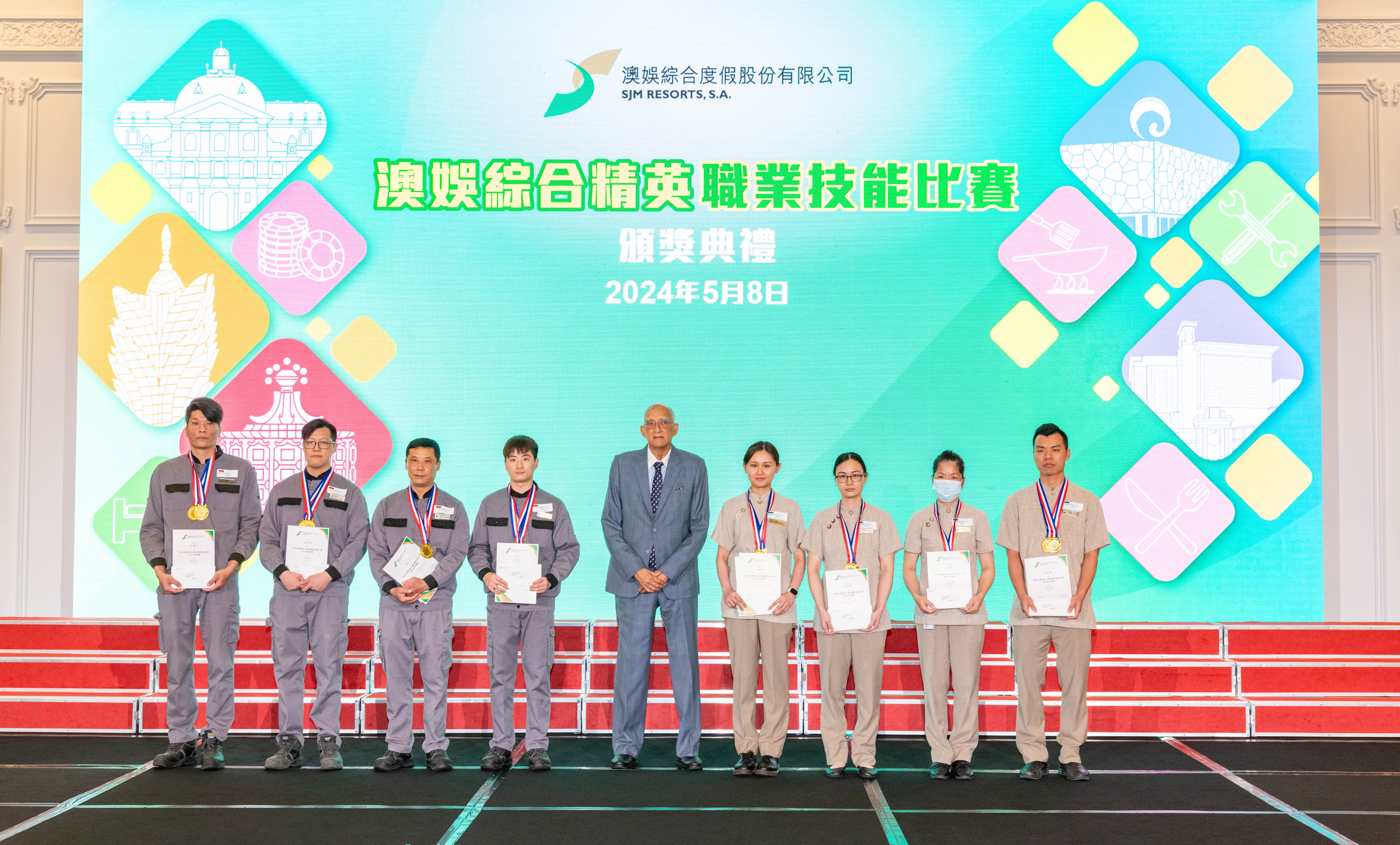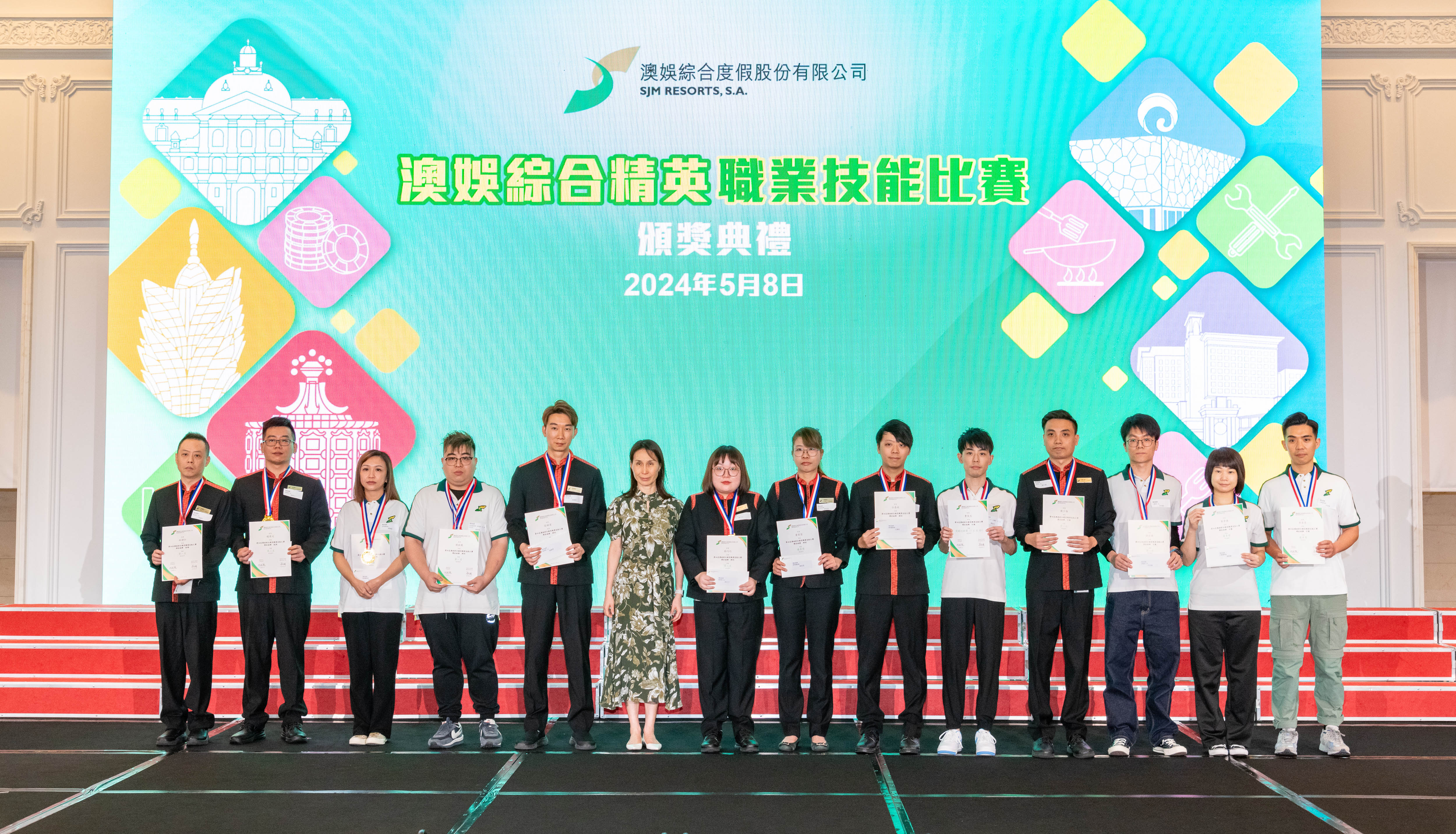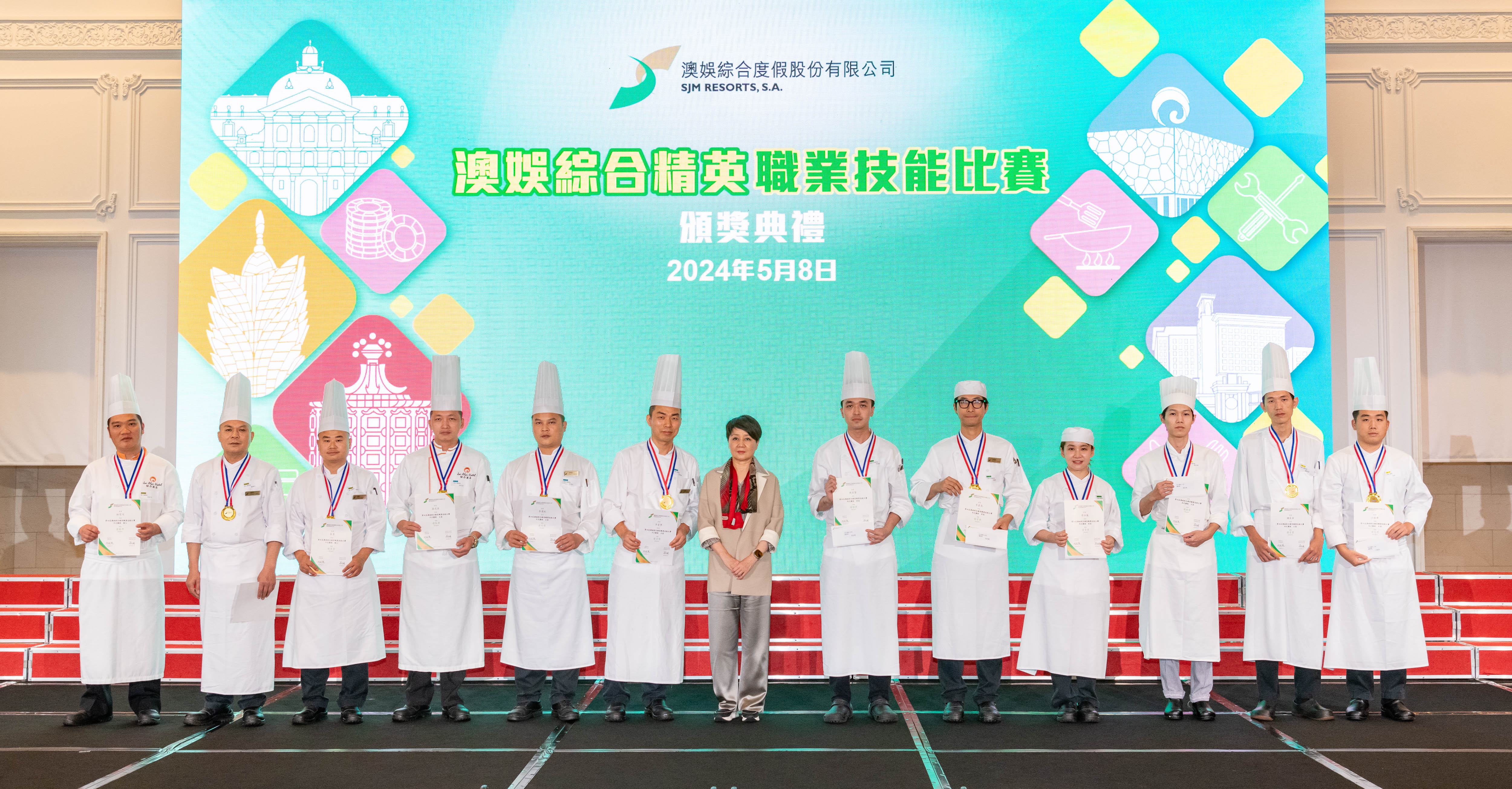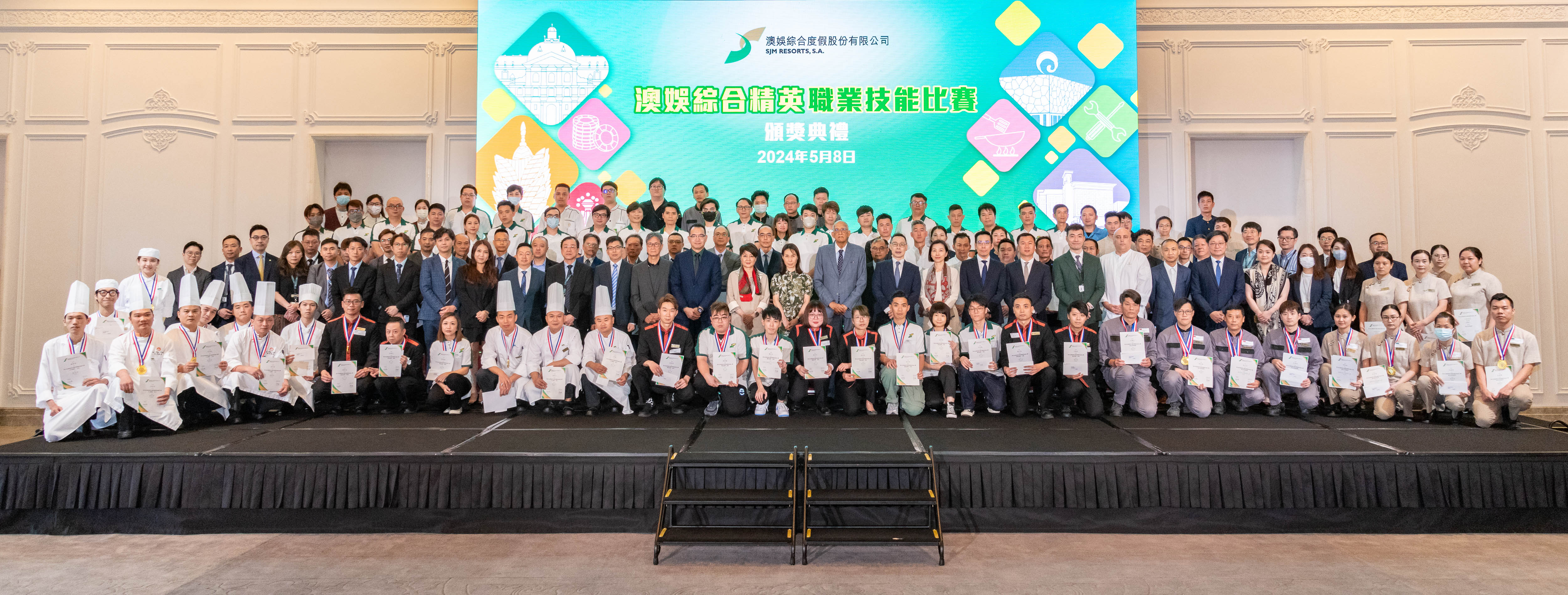 【即時新聞】澳娛綜合度假股份有限公司舉辦的年度「澳娛綜合精英職業技能比賽」已於月前圓滿舉行。今天,澳娛綜合假上葡京禮堂舉行比賽的頒獎典禮,向各優勝者頒發獎項。出席頒獎典禮的包括澳娛綜合的管理層、部門主管、得獎者、評審委員會及籌備小組成員等,合共250人。