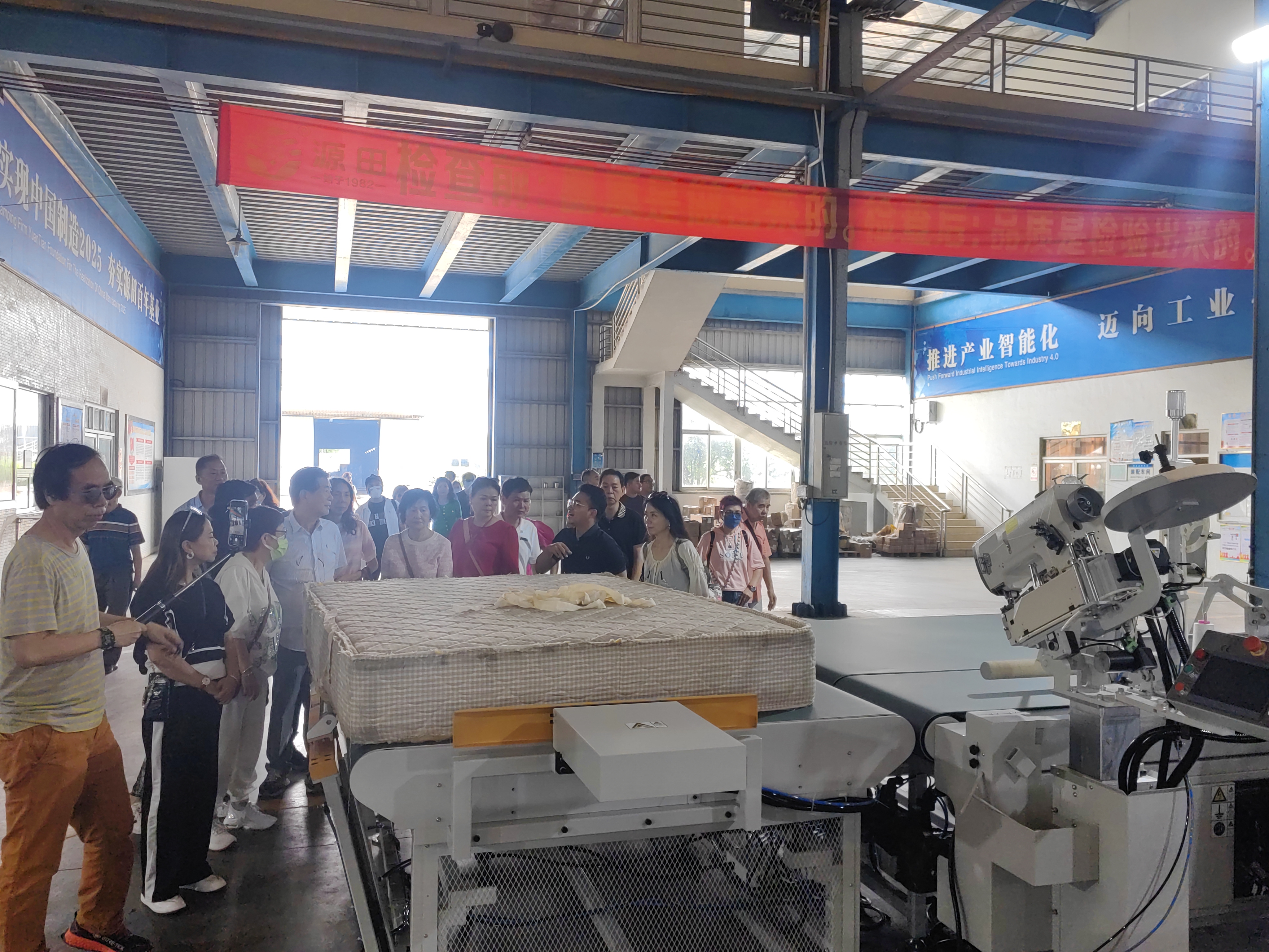 由團長、澳門麗星音樂文化協會會長區紹光率領下,訪問團一行早上約八時,由拱北乘旅遊巴出發前往佛山,約十時抵達行程首站佛山里水的花園式工廠源田工業園參觀,深入瞭解改革開放、現代化建設、村企結合發展等豐碩成果,領略佛山裏水的風土人情,感受紅色文化。在源田床具有限公司參觀期間,訪問團深入“數智化”生產車間,在公司負責人李泓業及公司總經理李繼業的介紹下,瞭解車間運轉、數字賦能生產等情況。佛山市源田床具機械有限公司成立於1982年,是一家專業生產床墊機械和彈簧床墊床網的高科技企業,能提供床墊行業整體解決方案。目前,源田公司擁有三百多項專利,包括發明專利、外觀設計專利、實用新型專利,產品在覆蓋全國的基礎上銷往全球100多個國家和地區。