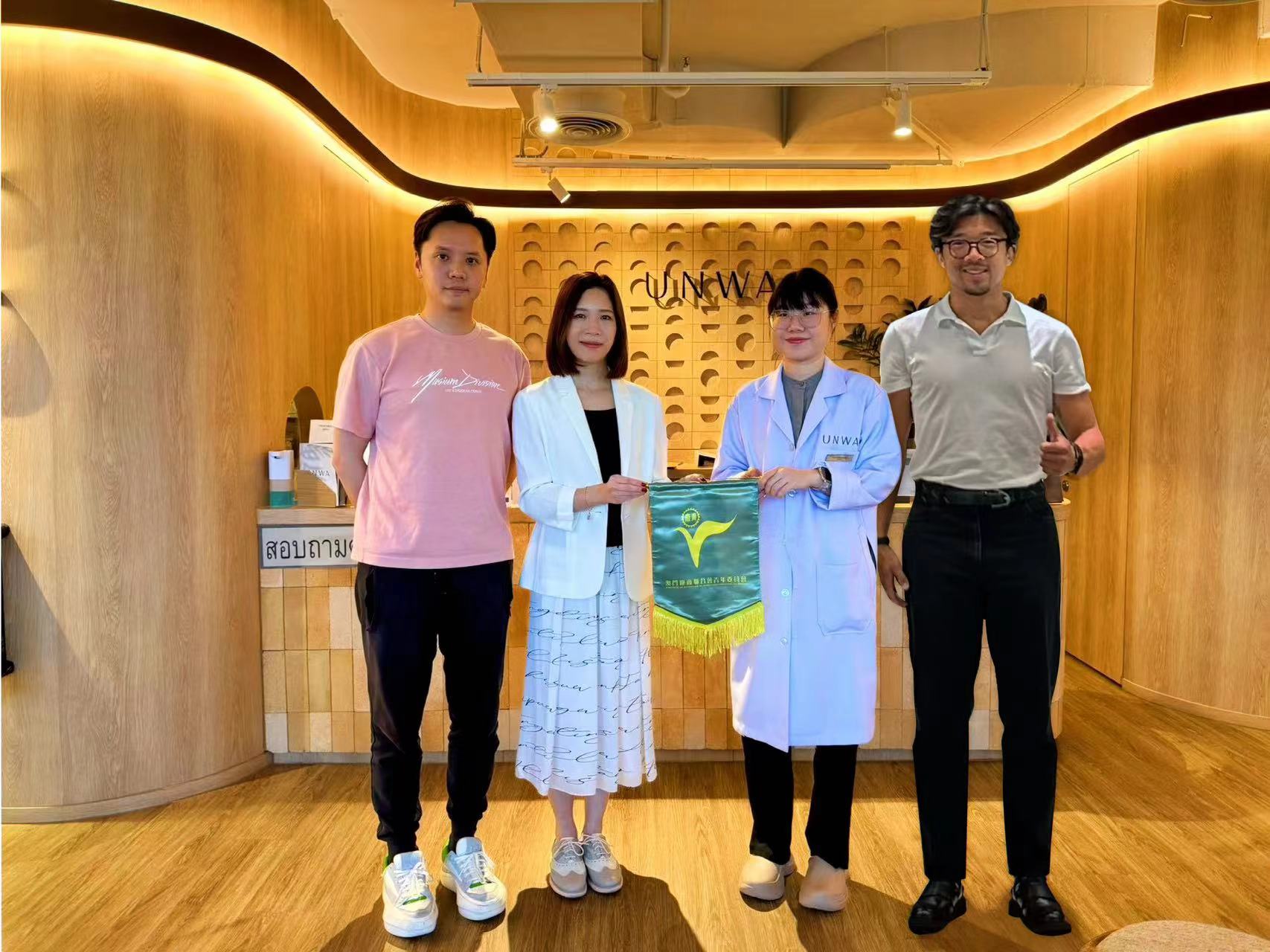【即時新聞】澳門廠商聯合會青年委員會一行於日前赴泰國曼谷考察,期間參觀了由澳門青年創辦的安華國際中醫養生集團Un-Wa以及中泰中醫藥交流合作中心,了解澳門中醫文化在泰國的傳播和創新發展。