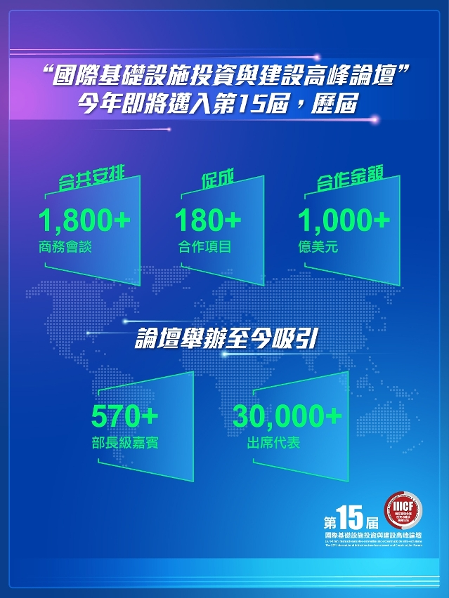 【即時新聞】第15屆國際基建論壇將於6月19至21日舉行,以“綠色創新 數智聯通”為主題。