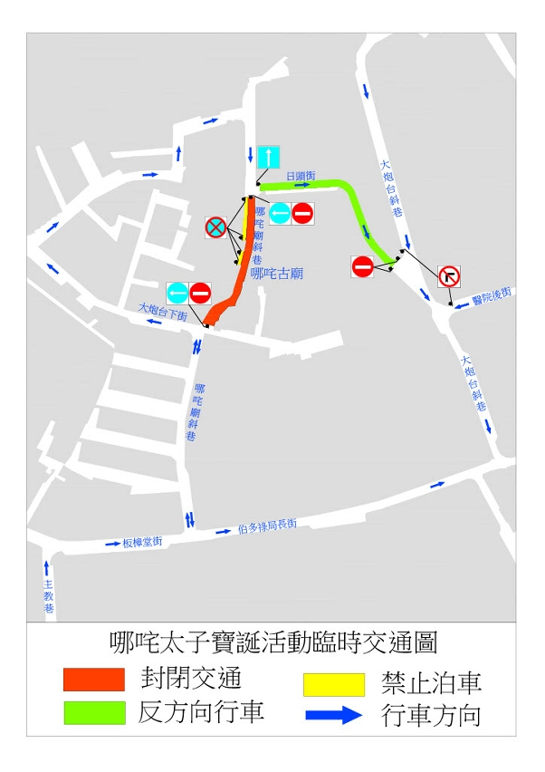 哪咤誕板樟堂一帶明起實施兩周臨時交通安排
