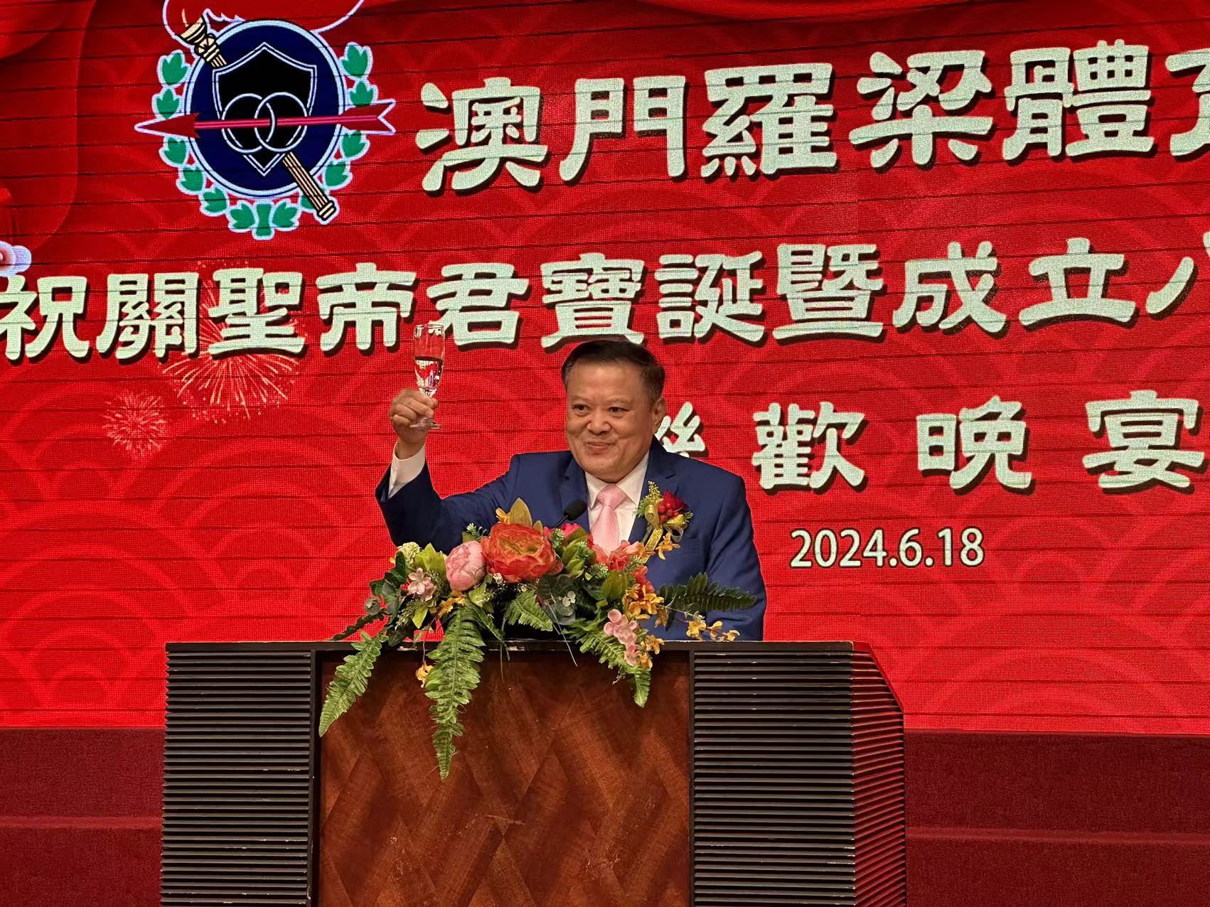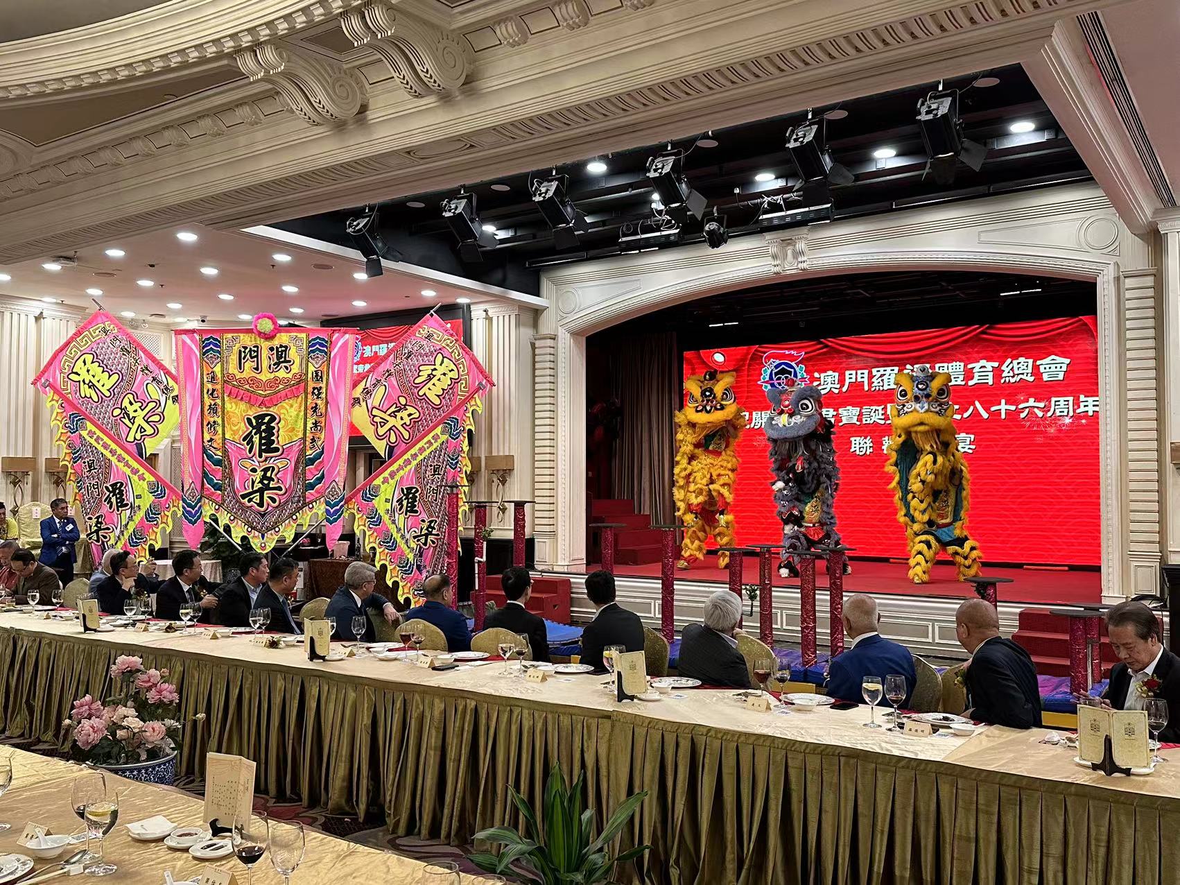 【即時新聞】澳門羅梁體育總會晚上在萬豪軒舉行「恭祝關聖帝君寶誕暨成立八十六周年聯歡宴會」,與各界嘉賓、社會賢達及會員歡聚一堂,場面熱鬧。