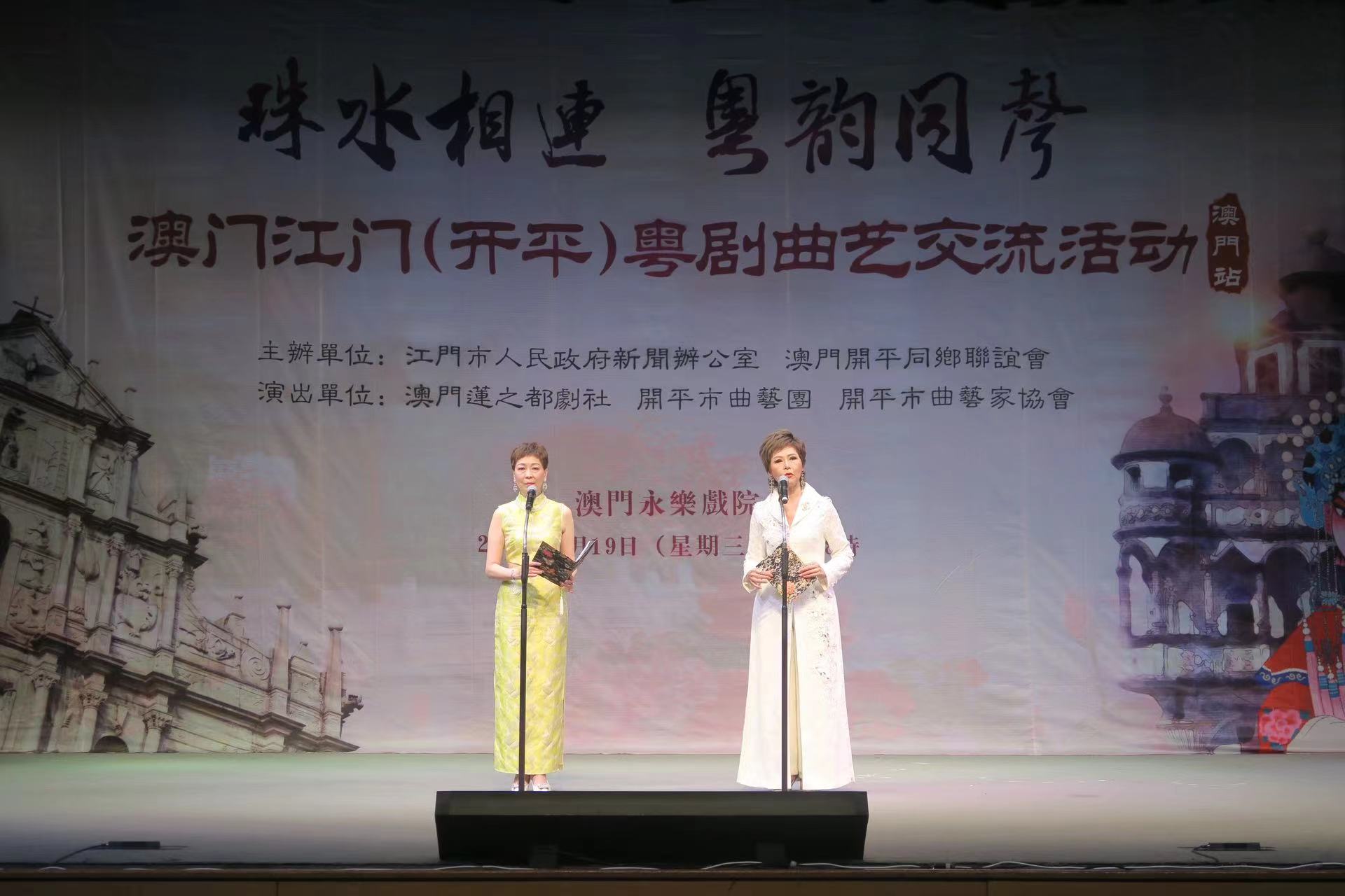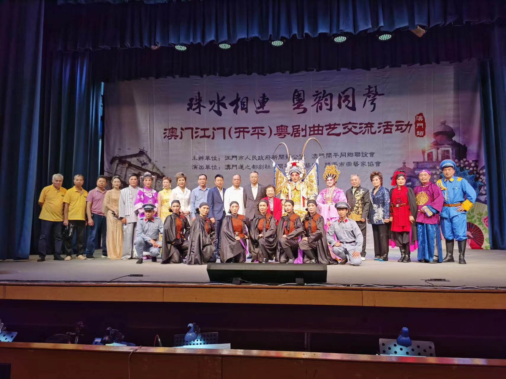 【即時新聞】江門市人民政府新聞辦公室與澳門開平同鄉聯誼會聯合主辦的「珠水相連·粵韻同聲」澳門——江門(開平)粵劇曲藝交流活動(澳門站)今晚在永樂戲院響鑼,來自澳門蓮之都劇社、江門市粵劇傳習所、開平市文化館及開平市曲藝家協會的粵劇曲藝家聯袂獻演,為廣大粵劇曲藝愛好者送上一場豐盛的文化盛宴。
