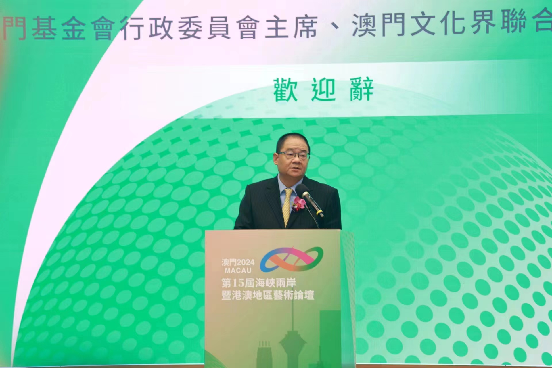 “海峽兩岸暨港澳地區藝術論壇”是中國文學藝術界聯合會加強與港澳台地區文化交流的品牌項目,自2009年起先後在海口、台北、澳門、香港、承德、台中、哈爾濱等地舉辦了十四屆,澳門基金會每年均組織澳門代表參與。今年論壇由澳門輪辦,由中國文學藝術界聯合會聯同澳門基金會、澳門文化界聯合總會合辦,開幕儀式早上九時舉行.澳門中聯辦副主任呂玉印、外交部駐澳門特派員公署特派員劉顯法等人出席,有150人與會。