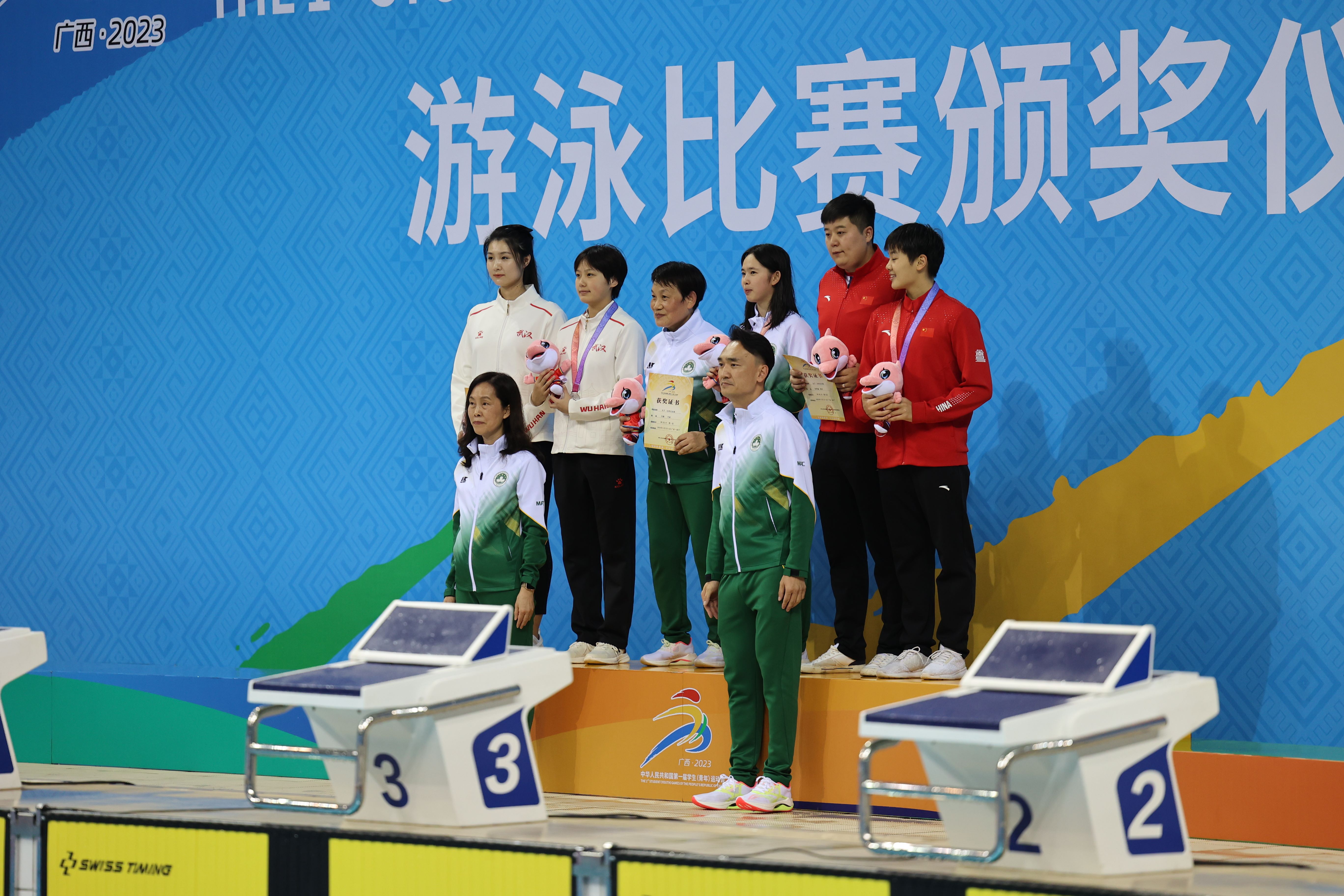 【即時新聞】由國家教育部、國家體育總局、共青團中央主辦,廣西壯族自治區人民政府承辦的“第一屆全國學生(青年)運動會”,將於5日在廣西體育中心舉行開幕儀式。本屆運動會設有校園組及公開組賽事,而在4日進行的公開組游泳賽事中,本澳的陳珮琳於女子50米蛙泳決賽游出31秒62的成績,獲得金牌,為體育代表團奪得本屆賽事首面金牌,社會文化司司長歐陽瑜到場祝賀並主持頒獎儀式。