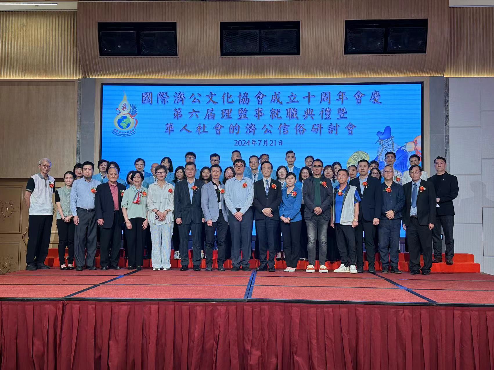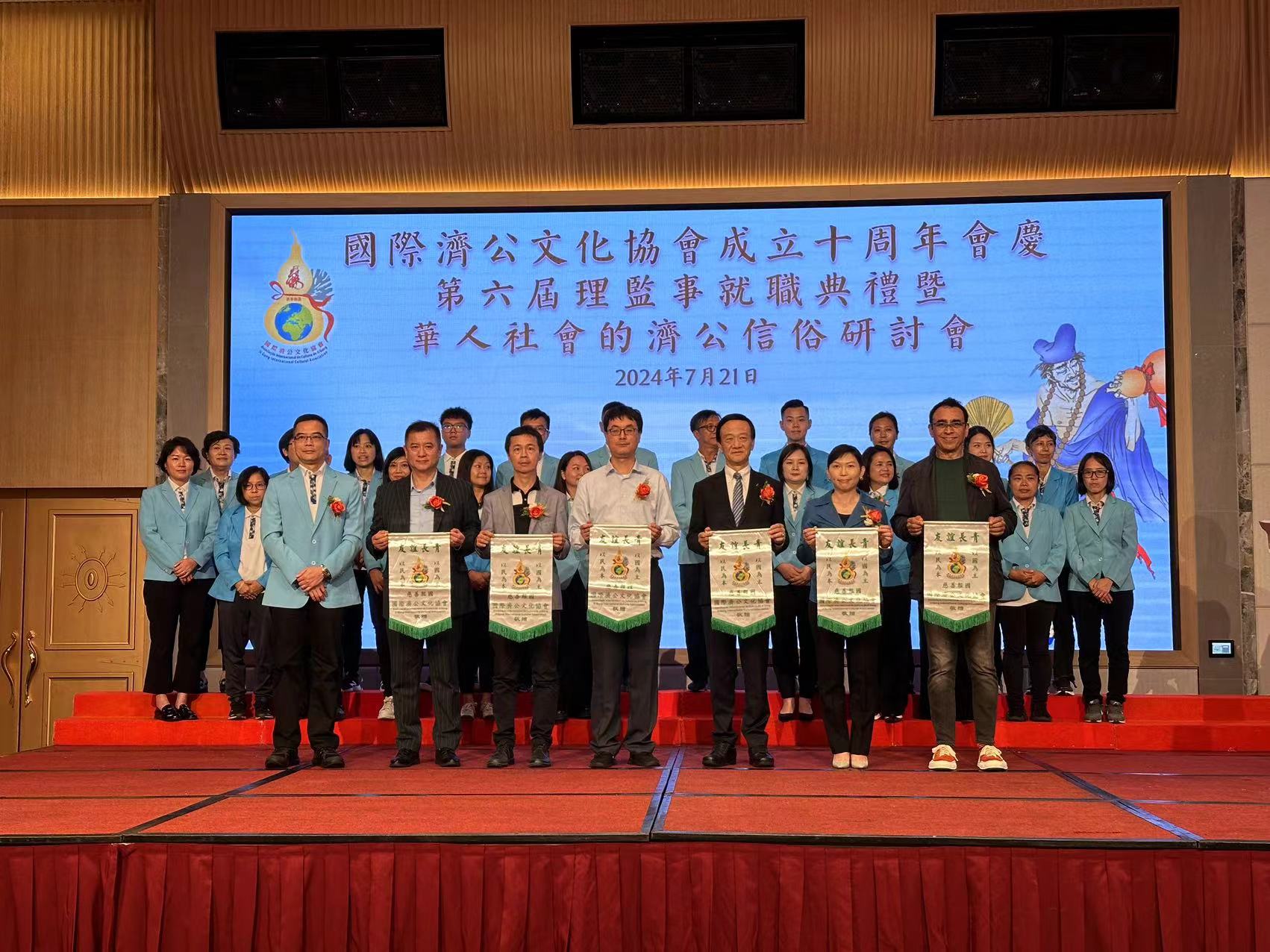 【即時新聞】國際濟公文化協會下午在漁人碼頭宴會廳舉行十周年會慶暨第六屆架構成員就職典禮及2024年國際濟公信俗研討會,邀請多名嘉賓和專家學者蒞臨,共同探討濟公文化及其在現代社會的影響和價值。該會表示,未來將繼續舉辦更多活動推廣濟公信俗及文化,讓更多人從不同角度瞭解並傳承中華傳統文化。