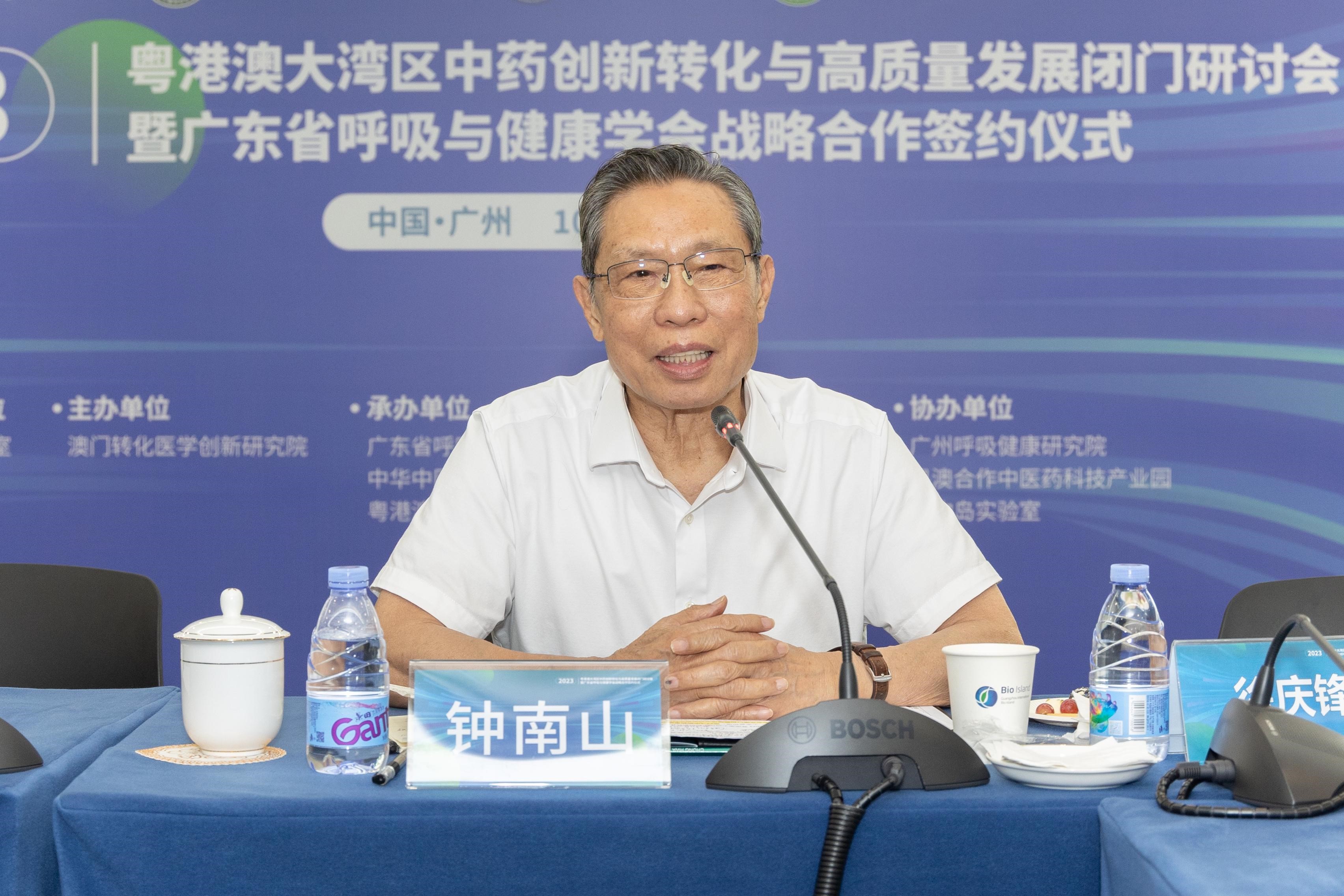 研討會主題為 “創新轉化與科學監管”,由廣東省呼吸與健康學會、中華中醫藥學會中藥產業發展與科學監管高端智庫、粵港澳中醫藥政策與技術研究中心承辦,廣州呼吸健康研究院、粵澳合作中醫藥科技產業園及生物島實驗室協辦。廣州呼吸健康研究院副院長、研究院指導委員會委員楊子峰主持開幕式;會議主席、中國工程院院士、廣州實驗室主任、研究院指導委員會主席鍾南山院士,廣東省中醫藥局局長徐慶鋒,廣東省藥品監督管理局副局長王玲等發表致辭。會上,廣東省呼吸與健康學會與清遠市佛岡縣簽署了戰略合作協議。
