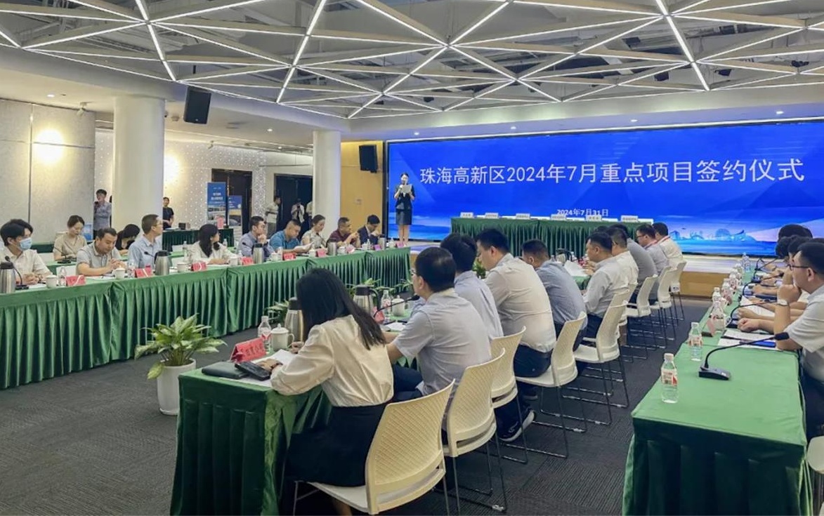 【即時新聞】今日上午,珠海高新區2024年7月重點項目簽約儀式在高新區科技創新展示廳舉行,易孚迪、極致貓、博明視覺、潔力醫療等重點項目現場簽約入駐,達產規模預計超12億元。