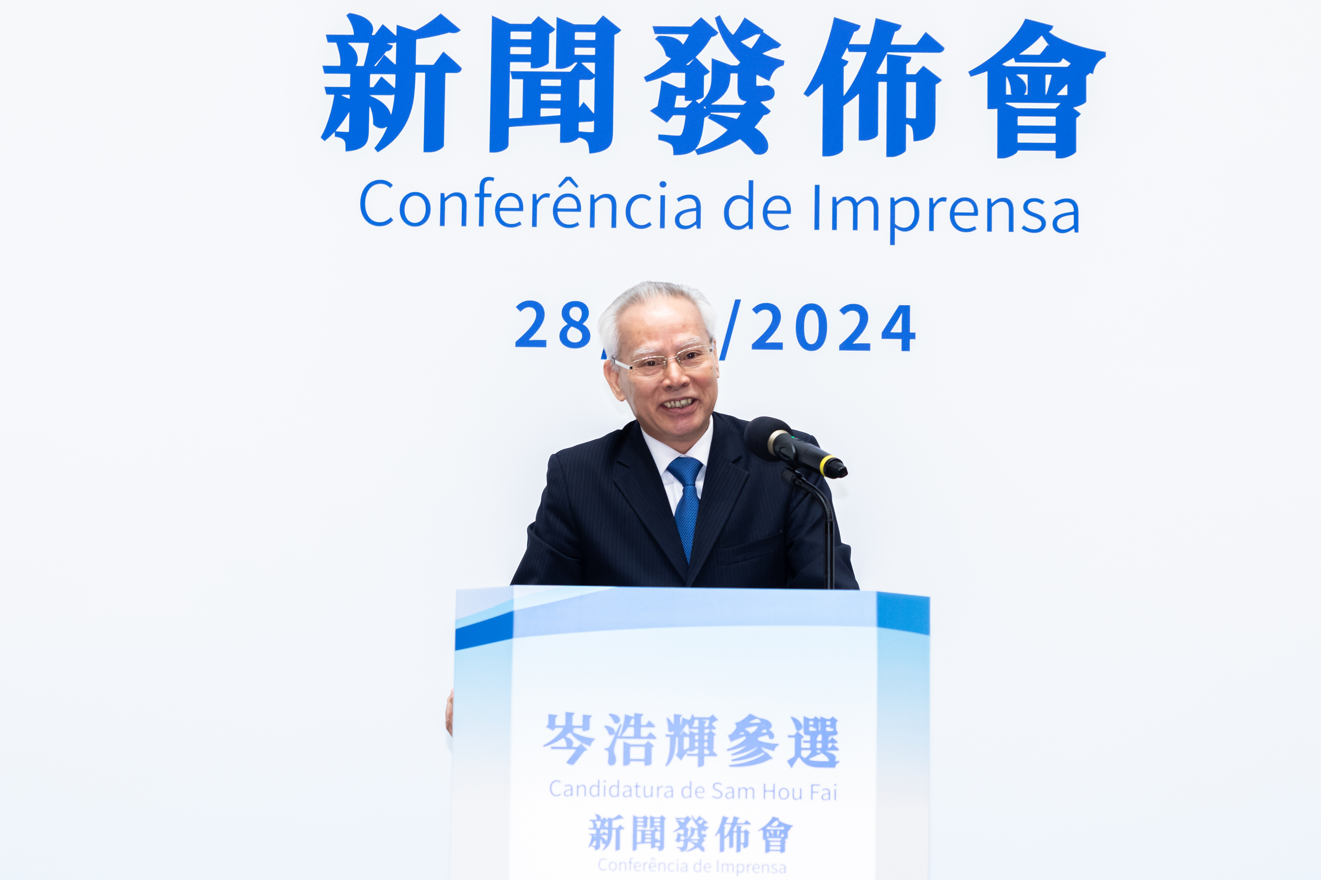 【特訊】岑浩輝昨日上午十一時假科學館會議廳舉行新聞發佈會,正式宣佈參選第六任行政長官選舉,並宣讀參選宣言。其參選的施政理念是「奮發同行 、持正革新」,承諾若當選,必定全面準確、堅定不移貫徹「一國兩制」方針,忠誠踐行「一國兩制」根本宗旨,嚴格按照憲法和基本法履職盡責,抓住國家發展帶來的歷史機遇,與新一屆政府管治團隊一道,攜手社會各界共創澳門美好未來。