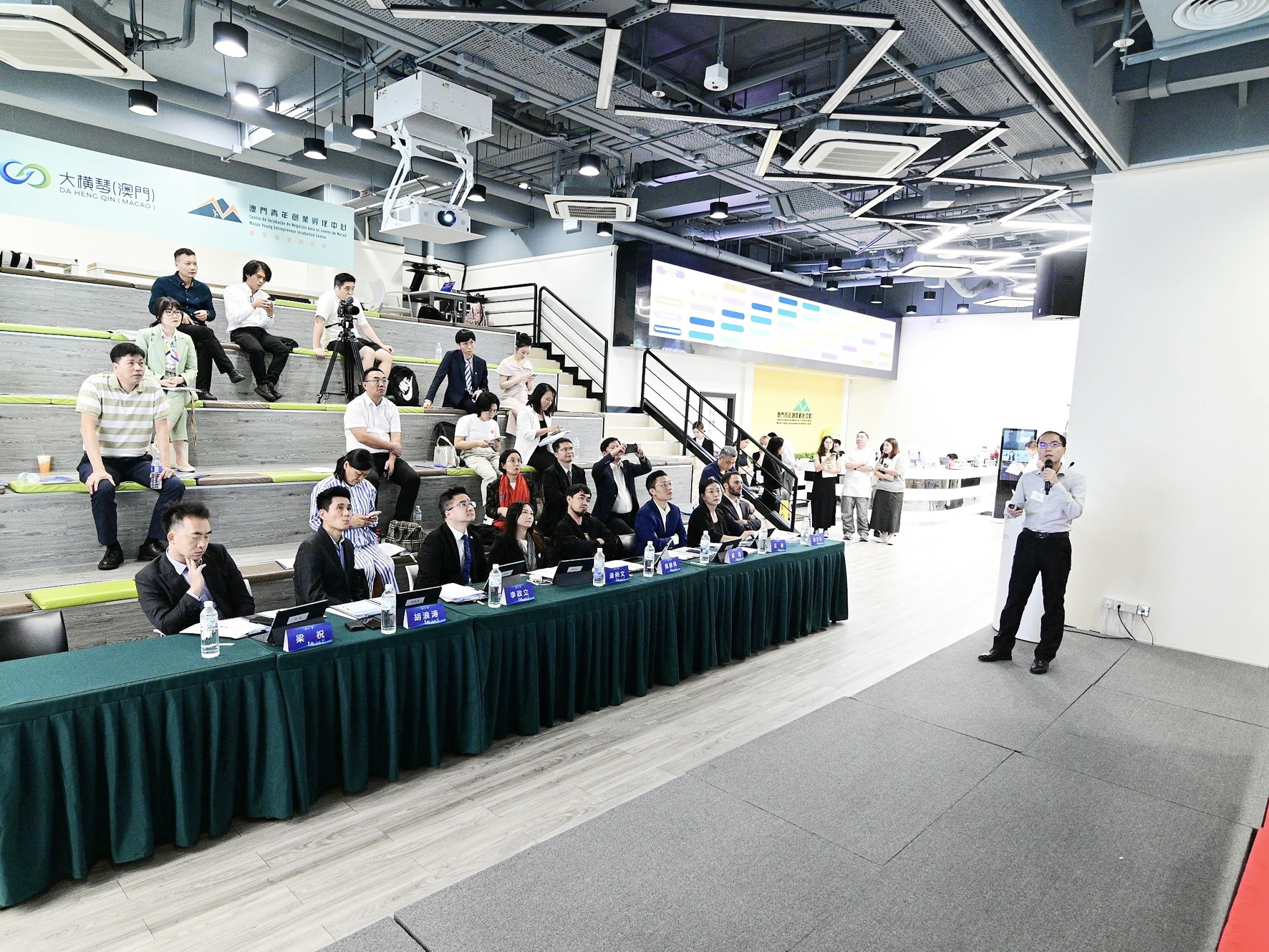 活動昨日下午一時半至五時假澳門青年創業孵化中心舉行。工業和信息化部中小企業局副局長商超,澳門經科局代局長陳子慧,工業和信息化部中小企業發展促進中心副主任馮旭,澳門中聯辦經濟部二級調研員彭向陽,廣州市工業和信息化局副局長、市民營經濟和中小企業局局長黃符偉等出席。