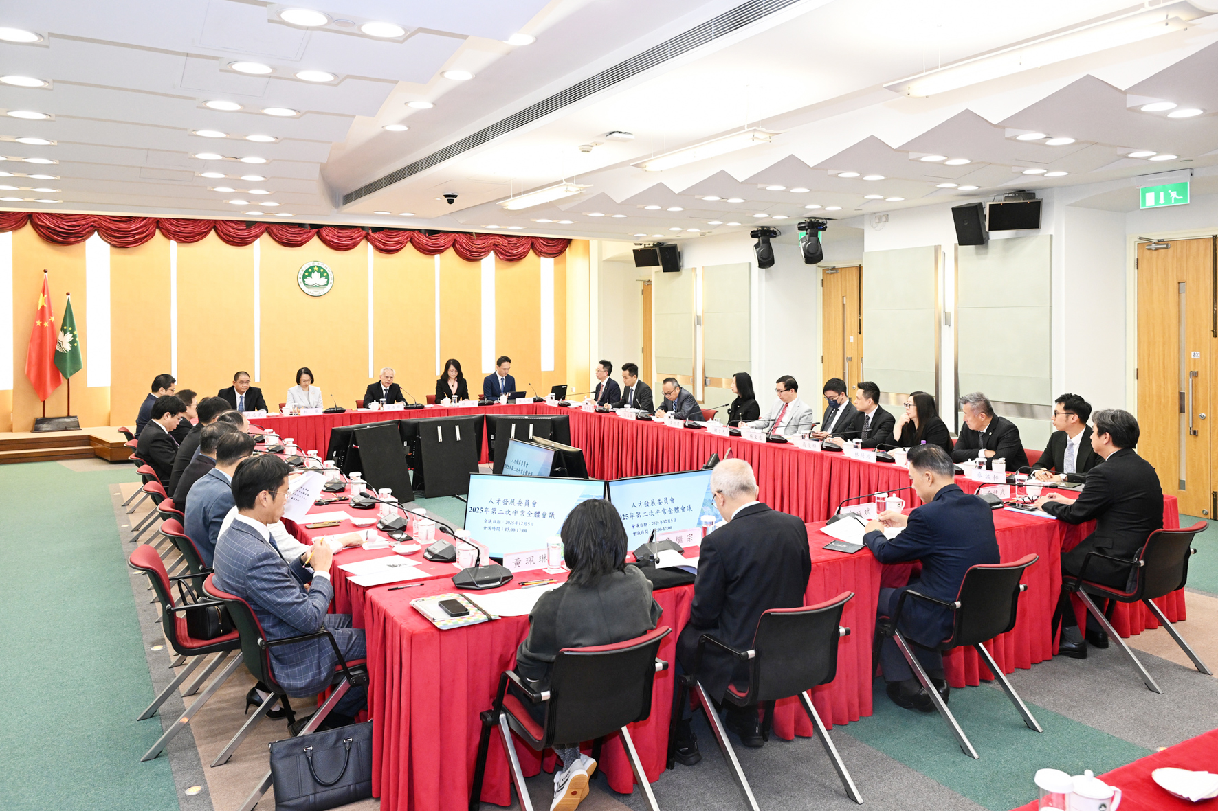 【特訊】人才發展委員會昨日在政府總部多功能廳舉行2025年度第2次平常全體會議,會議由人才發展委員會主席、行政長官岑浩輝主持,委員會副主席、社會文化司司長柯嵐介紹人才工作的方向,委員會秘書長龔志明及副秘書長黃健武進行匯報。