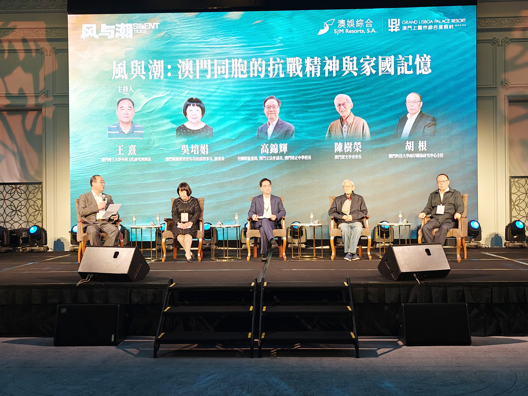 其後,在主題為「風與潮:澳門同胞的抗戰精神與家國記憶」的圓桌論壇上,高錦輝提到,1936年的澳門僅有70所學校、8000餘名學生,到1940年增至120多所學校、3萬多名學生,成為抗戰時期教育界的「避難所」,日軍侵華後,嶺南大學等多地學校遷至澳門,香港1941年淪陷後亦有不少學校遷入,保障了中華民族教育的延續。胡根指,澳門擁有數百年中西文化交融史,是中西文明互鑒的典範、海上絲綢之路的燈塔,在歷史長河中與祖國利益緊密相連。儘管抗戰時期只是澳門漫長歷史中的一段插曲,卻深刻彰顯了澳門與祖國休戚與共、利益相連的緊密關係,始終堅定站在國家與民族的正義一邊。胡根又詳述了抗戰時期澳門的奉獻與困境。他提到,當時澳門總人口僅十幾萬,卻毅然接納了超過兩倍以上的內地難民,大量難民的湧入讓澳門的住宿、飲食、醫療、教育等公共資源面臨巨大壓力,即便如此,抗戰時期,澳門各界仍傾力相助,包括多地學校遷至澳門,為戰爭孤兒提供庇護,延續教育火種;新聞界更是挺身而出,發起澳門規模最大的救災活動——「澳門四界救災會」,不僅救助難民,更籌集經費支援國內抗日隊伍;澳門居民也積極投身抗戰,有人直接參軍,亦有不少人支持葉挺將軍領導的新四軍,用實際行動助力祖國抗戰。最後,他提到,澳門是一座滿是故事的城市,希望《風與潮》的播出能讓全國青少年深入瞭解澳門的抗戰歷史,銘記這段特殊歲月,同時呼籲澳門的創作者、歷史學家深入挖掘本土歷史素材,講好澳門故事。他更期盼有更多投資者及特區政府等各方力量攜手,共同發掘更多澳門歷史中的珍貴資源,讓澳門的愛國精神與歷史底蘊得以代代傳承。