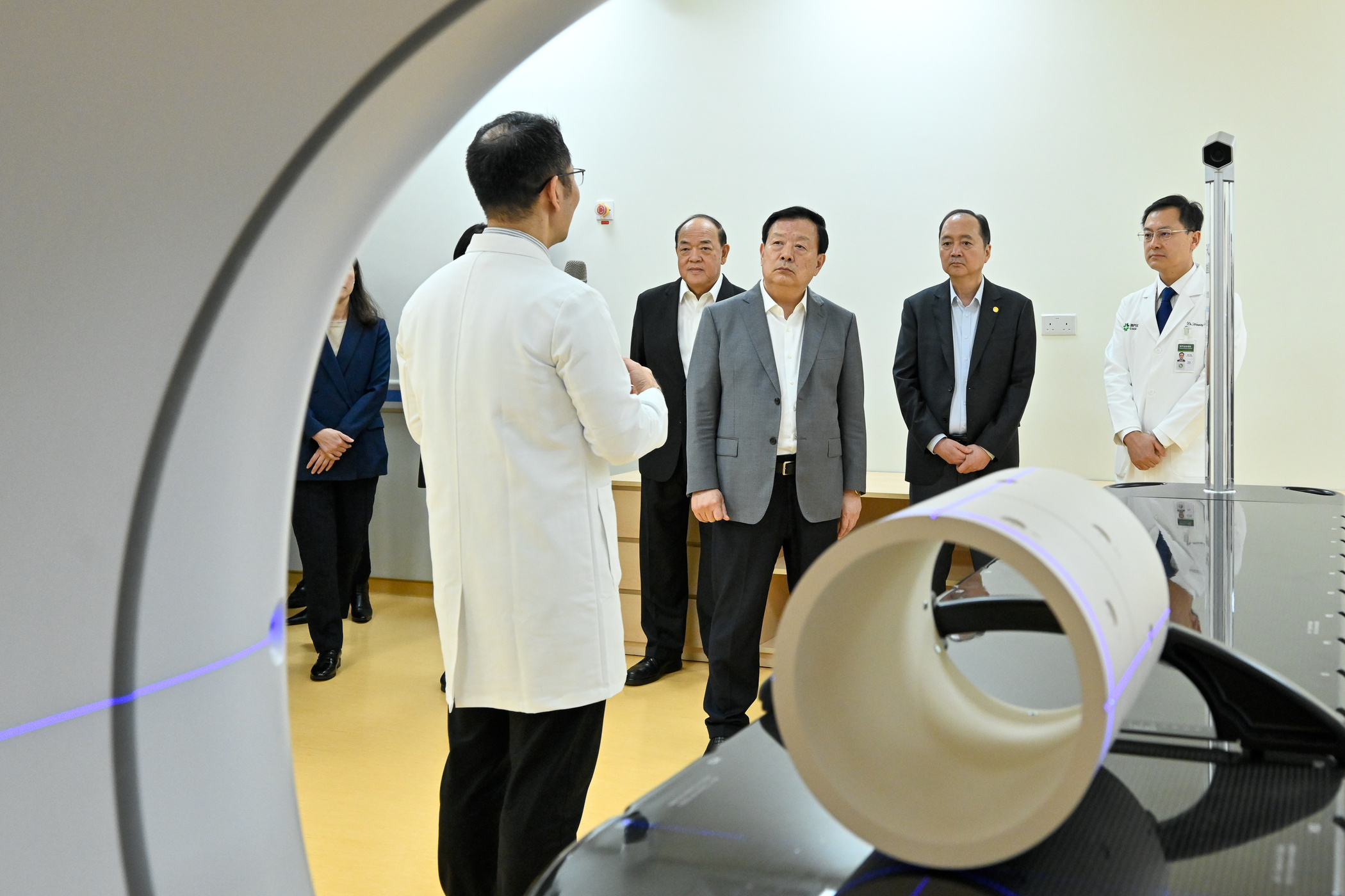 夏寶龍下午繼續進行考察調研,在行政長官賀一誠、社會文化司司長歐陽瑜、衛生局局長羅奕龍、離島醫療綜合體北京協和醫院澳門醫學中心院長吳文銘等陪同下,到澳門協和醫院考察調研,期間參觀了醫院的手術室中心、放療中心、國際醫療中心等。夏寶龍詳細聽取了醫護人員就先進醫療設備的特點、優勢和可治療疾病種類等的講解,以及有關醫院開業準備工作和服務的介紹。了解該院在助力提升本澳整體醫療水平及發展大健康產業方面的作用。