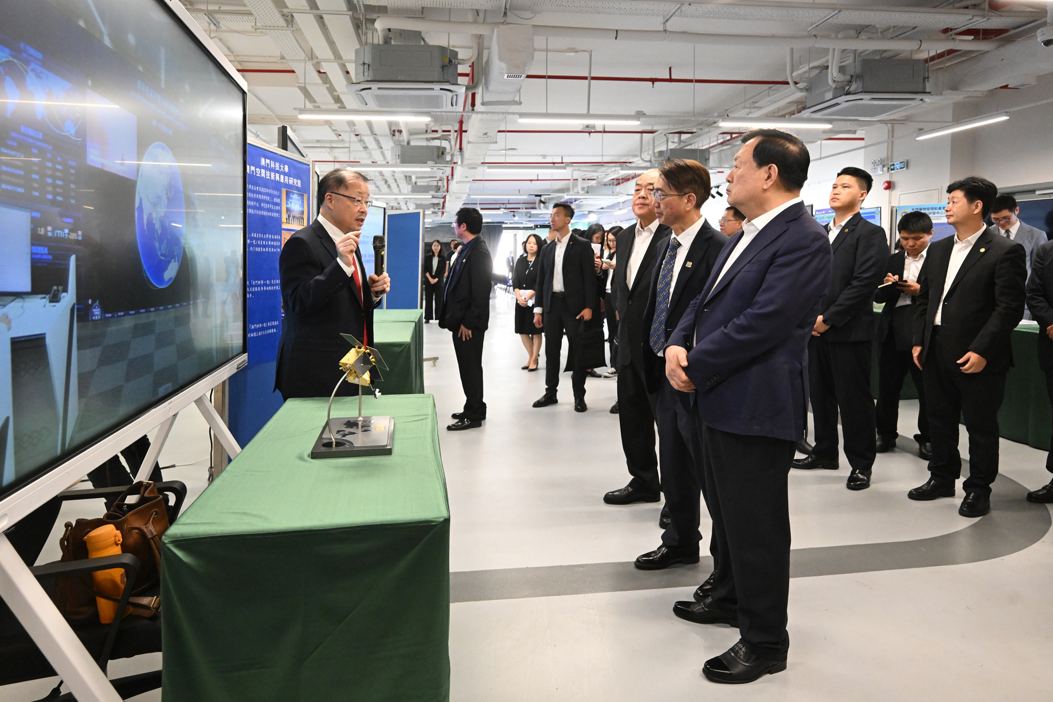 接著,夏寶龍在行政長官賀一誠、中聯辦主任鄭新聰、社文司司長歐陽瑜陪同下,分別考察澳門大學和澳門科技大學,夏寶龍首先考察澳門科技大學,參觀資訊科技展廳、智慧校園服務平台及校史館,再到康澤創新科技中心聽取澳門科技大學校監廖澤雲、校長李行偉等匯報大學產學研的最新發展,以及推進澳門海岸帶生態環境國家野外科學觀測研究站和水利部數字孿生重點實驗室的工作情況,並參觀中心內相關實驗基地,了解產學研成果轉化工作。