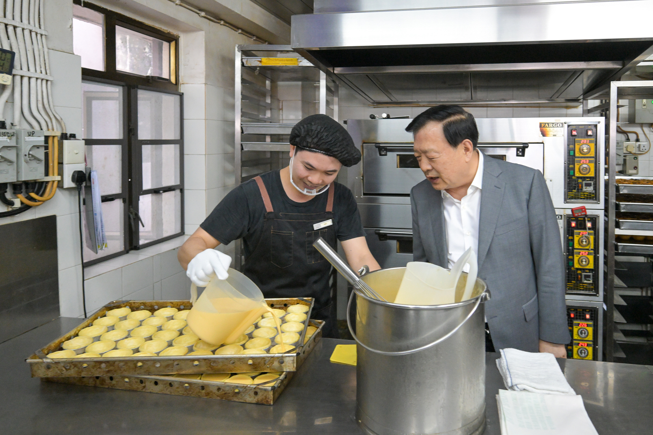 在路環市區參觀期間,瞭解本澳非物質文化遺產項目「葡撻製作技藝」。在荔枝碗船廠片區參觀期間,分別聽取文化局局長梁惠敏講解荔枝碗的歷史、片區的整體方案及修復內容,感受船廠活化後濃厚的文化氛圍。夏寶龍與現場文創市集攤主交流並予以鼓勵,同時亦向造船老師傅瞭解造船工藝及歷史。