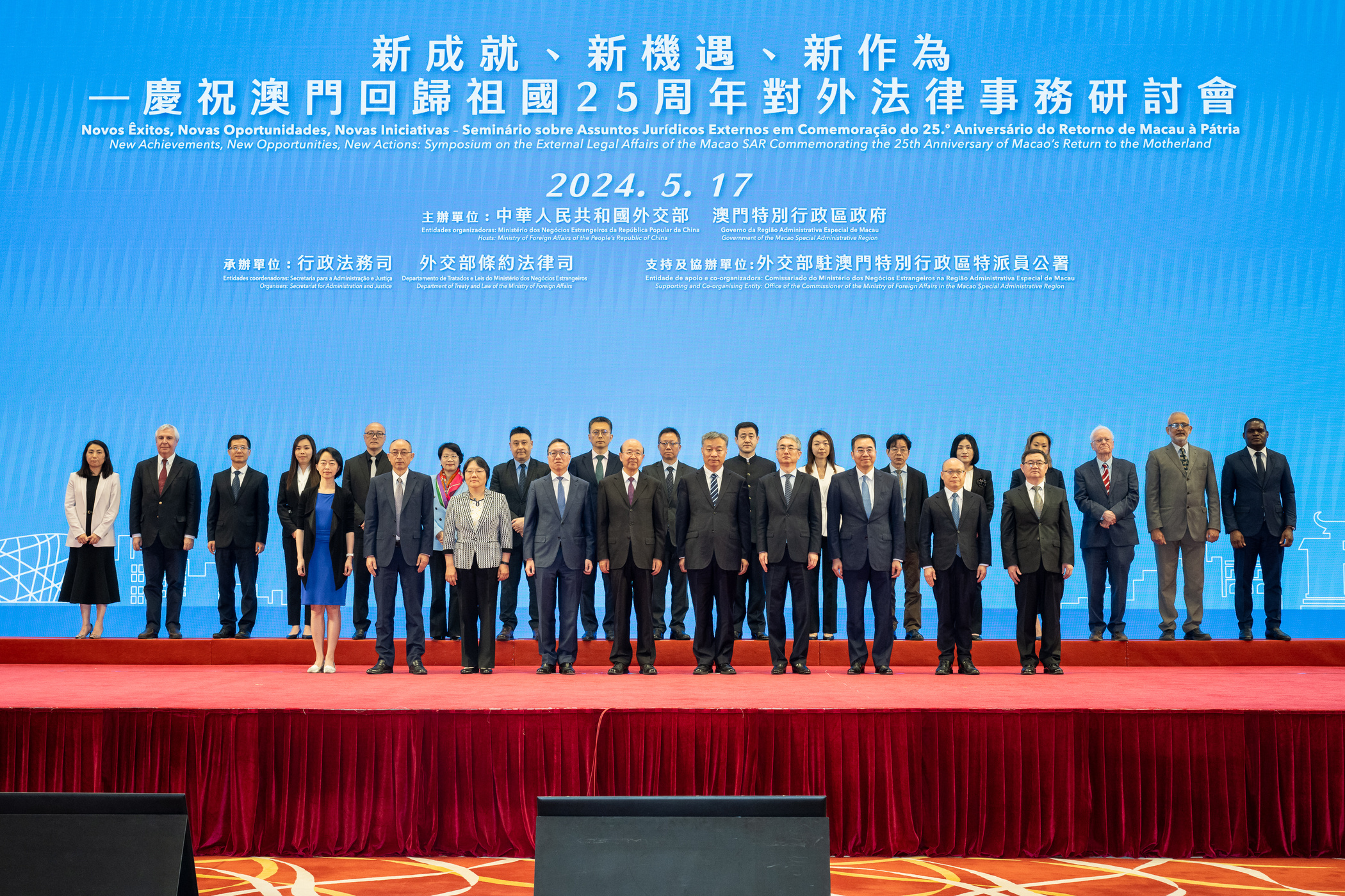 開幕儀式昨日上午九時半假中葡綜合體東廳舉行,外交部部長助理苗得雨、外交部駐澳特派員公署特派員劉顯法、澳門行政法務司司長張永春、香港律政司司長林定國、外交部條法司司長馬新民、澳門中聯辦法律部部長王恆、香港中聯辦法律部部長劉春華,中央港澳辦、國務院港澳辦八局副局長余向軍等出席。